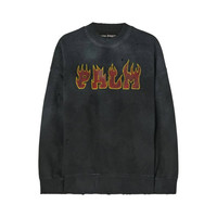 Palm Angels Logo Flames Vintage Crew 'Black/Red'