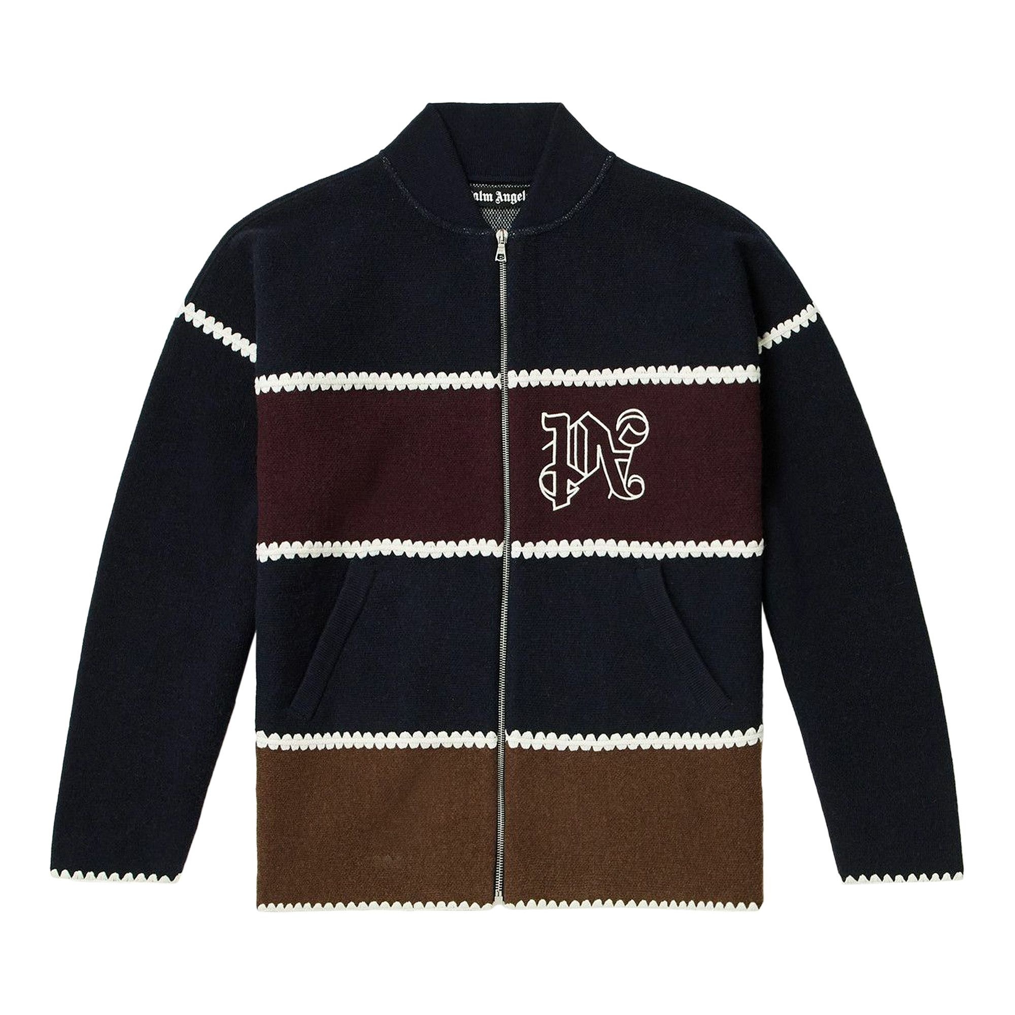 Palm Angels Monogram Striped Knit Jacket 'Navy Blue'