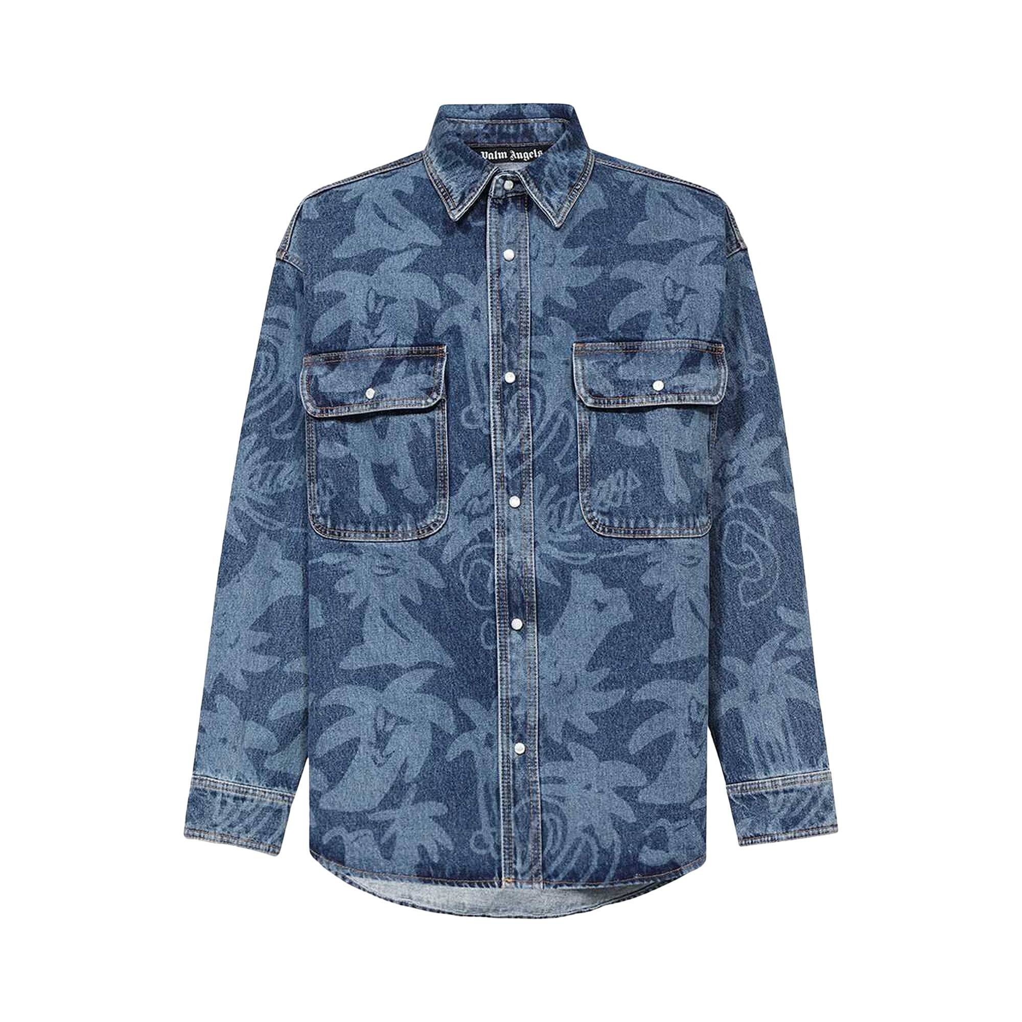 Palm Angels Palmity Laser Print Denim Shirt 'Light Blue'