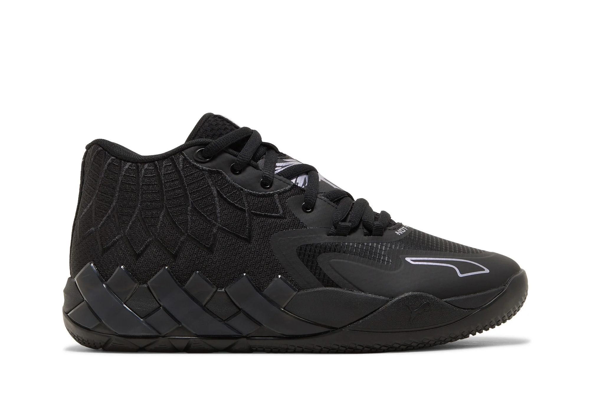 The PUMA MB.01 ‘Iridescent Dreams’ pairs a stealthy monochromatic design with luminous accents. LaMelo Ball’s debut signature shoe carries a blacked-out monomesh upper with tonal no-sew overlays and signature embroidered detailing around the collar. The one-note finish is disrupted by iridescent branding elements, including a ‘1 of 1’ tongue tag and ‘Not From Here’ inscribed on the vamp. The lightweight build sits on a matching black NITRO foam midsole, reinforced underfoot by a durable non-slip rubber outsole. UPPER MATERIAL Mesh