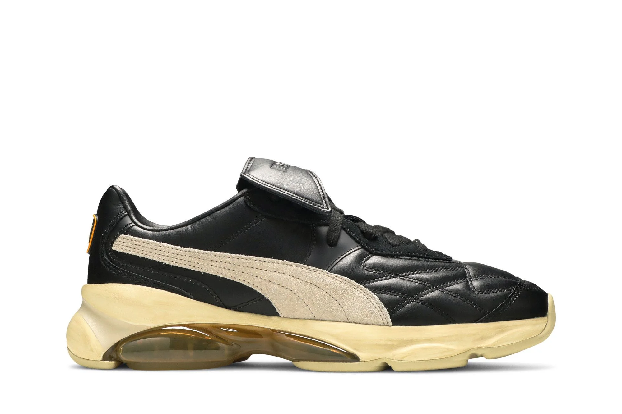 Made in collaboration with the LA-based streetwear label, the Rhude x PUMA Cell King ‘Black Oatmeal’ highlights a simple two-tone color scheme on a hybrid silhouette that blends old and new. The quilted black leather upper, featuring a fold-over tongue with debossed Rhude branding, replicates the look of the PUMA King soccer boot, while the EVA midsole packs contemporary Cell cushioning in the heel and midfoot. Dual PUMA and Rhude badges adorn each shoe’s back heel. UPPER MATERIAL Leather