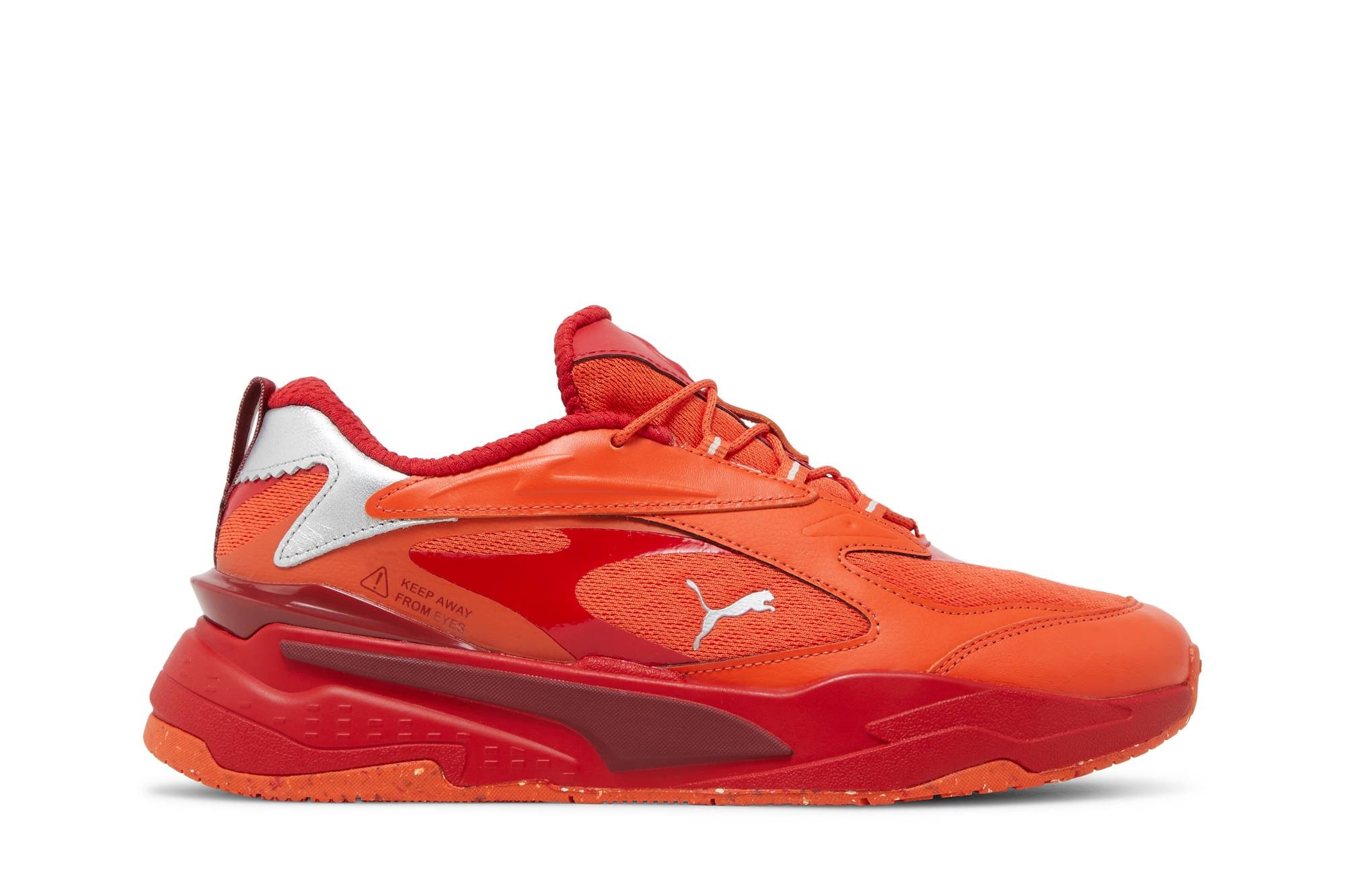 Inspired by taco trucks, the PUMA RS-Fast Caliente ‘Taco Tuesday’ applies a spicy red finish to the lifestyle runner, featuring an upper constructed from breathable textile with tonal leather overlays. Metallic silver detailing at the heel gives the nod to the foil wrapping typically used by taco trucks, while accompanying pull tabs are marked with ‘Pull to Open’ instructions. An embossed flame graphic on the tongue denotes extreme heat levels. In that same vein, the lateral heel is printed with text that reads ‘Keep Away from Eyes.’ UPPER MATERIAL Mesh