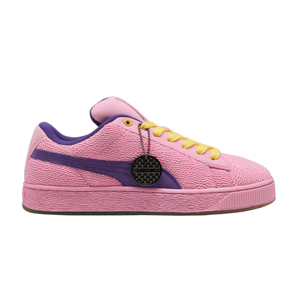 The Teenage Mutant Ninja Turtles x PUMA Suede XL 2 'Krang' makes use of a pink textile upper, featuring a squiggly texture that evokes the archvillain's alien appearance. Contrasting violet accents land on the textile collar lining and suede Formstrip. A co-branded woven tag graces the tongue, while PUMA's jumping cat logo adorns the heel tab. Underpinning the sneaker is a translucent rubber outsole in a gradient blend of green and orange. UPPER MATERIAL Textile