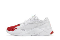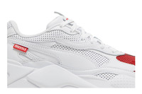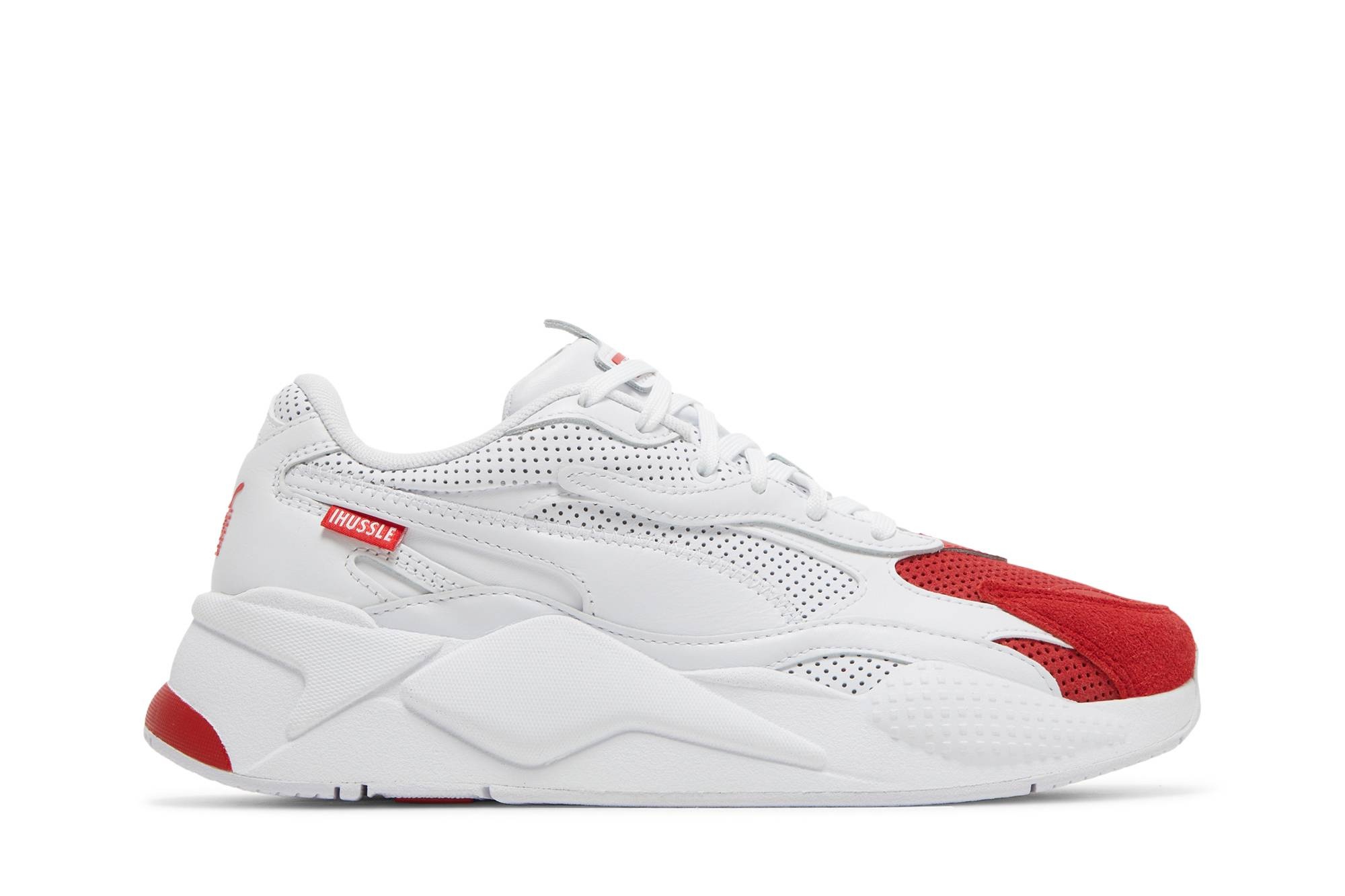 The TMC x PUMA RS-X3 ‘White’ celebrates the 10th anniversary of Nipsey Hussle’s acclaimed mixtape, ‘The Marathon Continues.’ The upper combines a white perforated leather base with tonal leather overlays and a stitched Formstrip, embellished with a red woven ‘IHUSSLE’ tag on the lateral side. Matching crimson accents land on ‘The Marathon’ tongue tag and heel overlay, featuring PUMA’s jumping cat logo integrated into the TMC flag. A solid white polyurethane midsole offers lightweight cushioning. UPPER MATERIAL Mesh