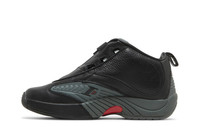 Allen Iverson wore his fifth signature shoe, the Reebok Answer 4, during the 2000-2001 season, leading the Philadelphia 76ers to the NBA Finals for the first time since 1983 and winning the scoring title and NBA MVP. The Answer 4 features a shrouded tumbled leather upper with a zip-up closure system and full-length DMX cushioning. This colorway boasts a black, red and Rivet Grey color scheme with a rubber outsole featuring a graphic imprint of Iverson’s face and his ‘Only The Strong Survive’ motto. UPPER MATERIAL Leather