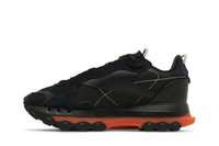The Cardi B x Reebok women’s Classic Leather ‘Core Black Fiery Orange’ features a fashion-forward design that reflects the personal style of the Bronx-born rapper. The black-out upper combines leather paneling with suede overlays and open mesh construction on the toe box. Champagne-colored accents make their way to a pair of corded pull tabs, along with embroidered Reebok branding on the tongue and quarter panel. The sneaker rests on a black EVA midsole, supported by a two-tone lugged rubber outsole in black and vibrant orange. UPPER MATERIAL Leather