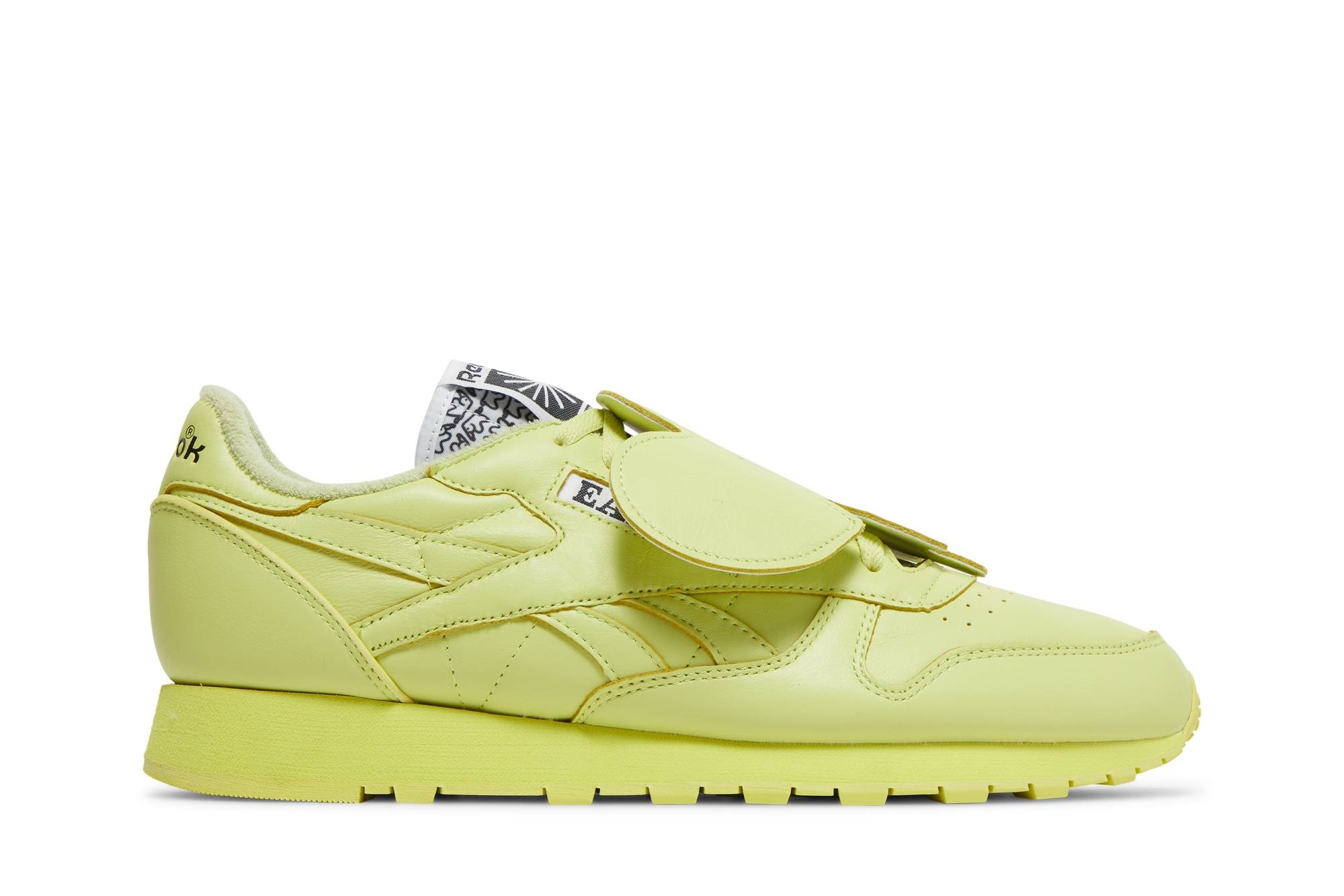 The Eames Office x Reebok Classic Leather ‘Cool Aloe’ is taken from a footwear collection conceived in partnership with the iconic design studio. This monochromatic colorway of the retro silhouette features a decorative piece in the shape of the Eames Elephant, created by Ray and Charles Eames as a children’s toy and stool. The iconic pachyderm sits atop the lace bed in the same shade of yellow utilized on the leather upper and EVA midsole. Dual Reebok and Eames branding decorates the woven tongue tag and custom sockliner. UPPER MATERIAL Leather