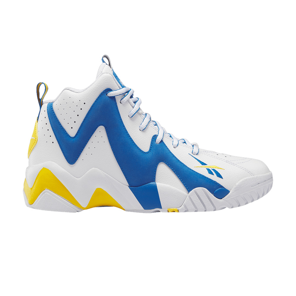 Dropping as part of the ‘NCAA Pack,’ the Reebok Hurrikaze 2 ‘UCLA’ showcases contrasting hues inspired by the Bruins. Made famous by Shawn Kemp, the retro ‘90s hoops shoe features a white leather upper with a zigzagging blue suede overlay that extends from the collar to the forefoot. Reebok’s Vector logo adorns the lateral toe and yellow leather heel patch. Accented with the same blue and yellow pops of color, the EVA midsole packs Hexalite cushioning for soft landings and a smooth ride. UPPER MATERIAL Leather