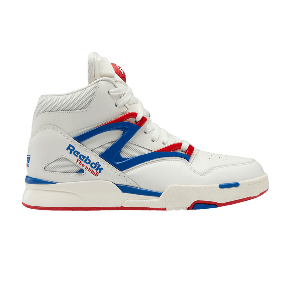 The Reebok Pump Omni Zone 2 ‘Chalk Vector Blue’ revives the vintage hoops shoe made famous by Dee Brown during the 1991 NBA Slam Dunk Contest. The high-top carries a white leather upper with a molded TPU overlay in blue and red. Embedded on the tongue is the iconic Pump button, which activates the retro technology that gives the shoe its custom fit. The sneaker rides on an EVA midsole with Hexalite cushioning, visible through a cut-out in the two-tone rubber outsole. UPPER MATERIAL Leather