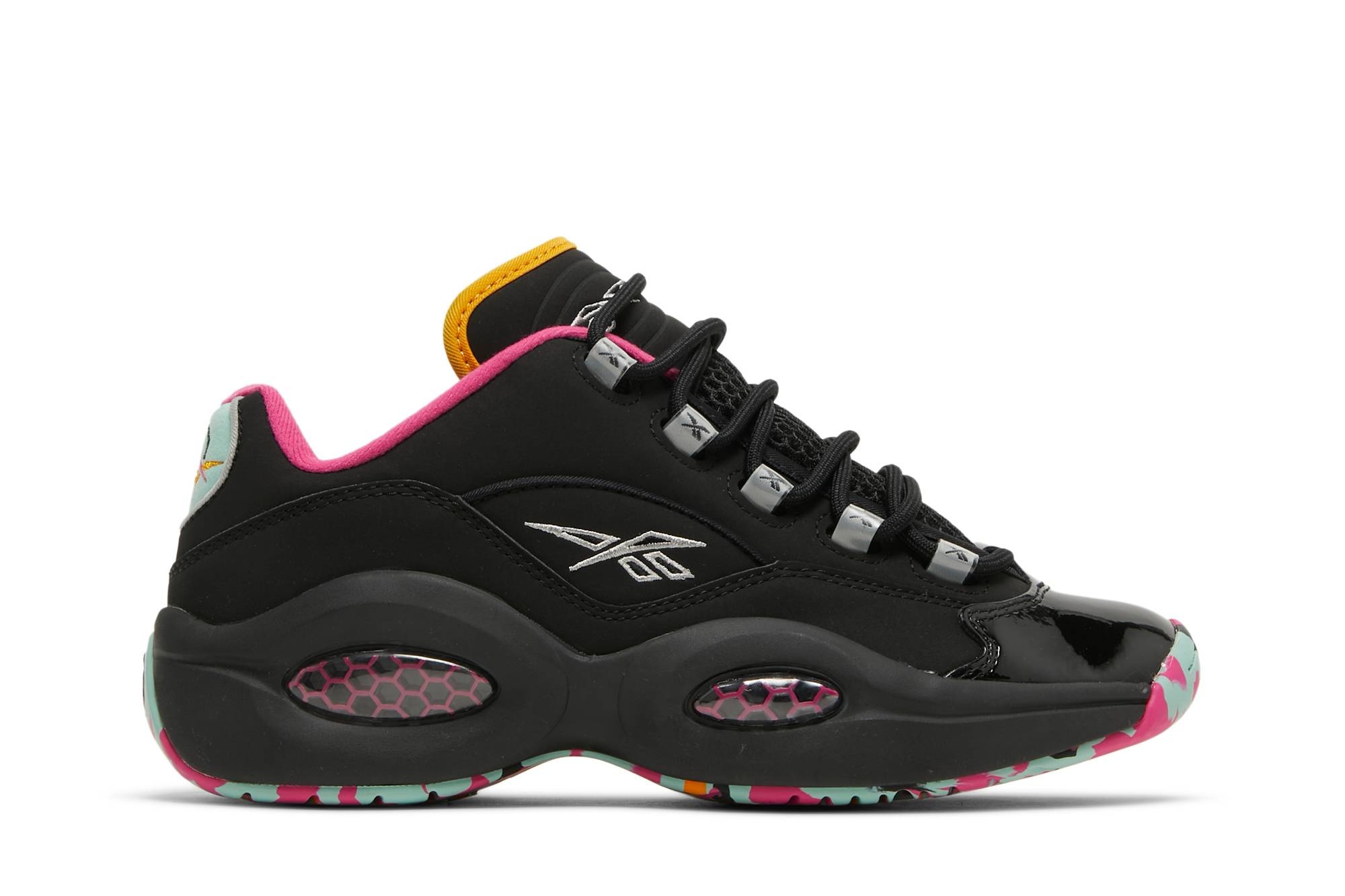 The Reebok Question Low ‘Alive With Color’ updates Allen Iverson’s debut signature shoe with vibrant accents that nod to the shoe’s ‘90s origins. The low-top makes use of a black nubuck upper with a leather toe cap covered in a multicolor paint splatter effect. The scrambled design is repeated on the rubber outsole, while the same blend of contrasting hues form the Question logo on the heel tab. Lightweight cushioning arrives via a black EVA midsole, featuring visible Hexalite units outlined in pink.