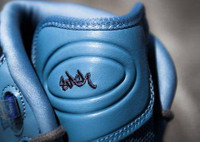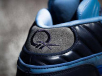 New York City graffiti legend Stash teamed up with Reebok on this June 2014 release, which updates Allen Iverson’s first signature shoe with the artist’s signature blue coloring. An Ultramarine leather base is accented with a navy leather mudguard and speckled navy midsole, as well as contrasting hits of grey suede on the toe and heel tab. Stash leaves his personal mark on the design by inscribing his signature on the tongue.