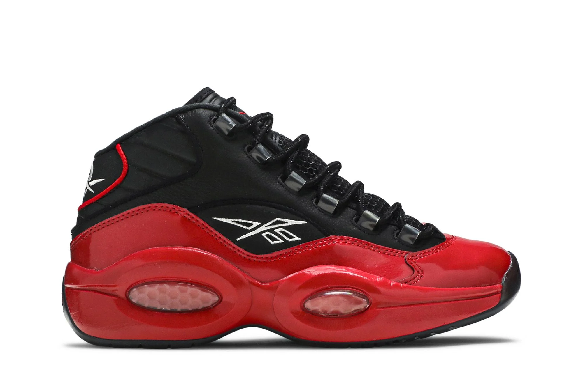 The Reebok Question Mid ‘Street Sleigh’ dresses Allen Iverson’s debut signature shoe in a simple two-tone color scheme, featuring a black leather upper with contrasting red patent leather on the mudguard and toe cap. The same crimson hue is applied to the EVA midsole, enhanced with visible Hexalite cushioning in the forefoot and heel. Underfoot, a smoky rubber outsole delivers grippy traction, replete with AI’s ‘3’ jersey number on the portion that wraps up the back heel. UPPER MATERIAL Leather