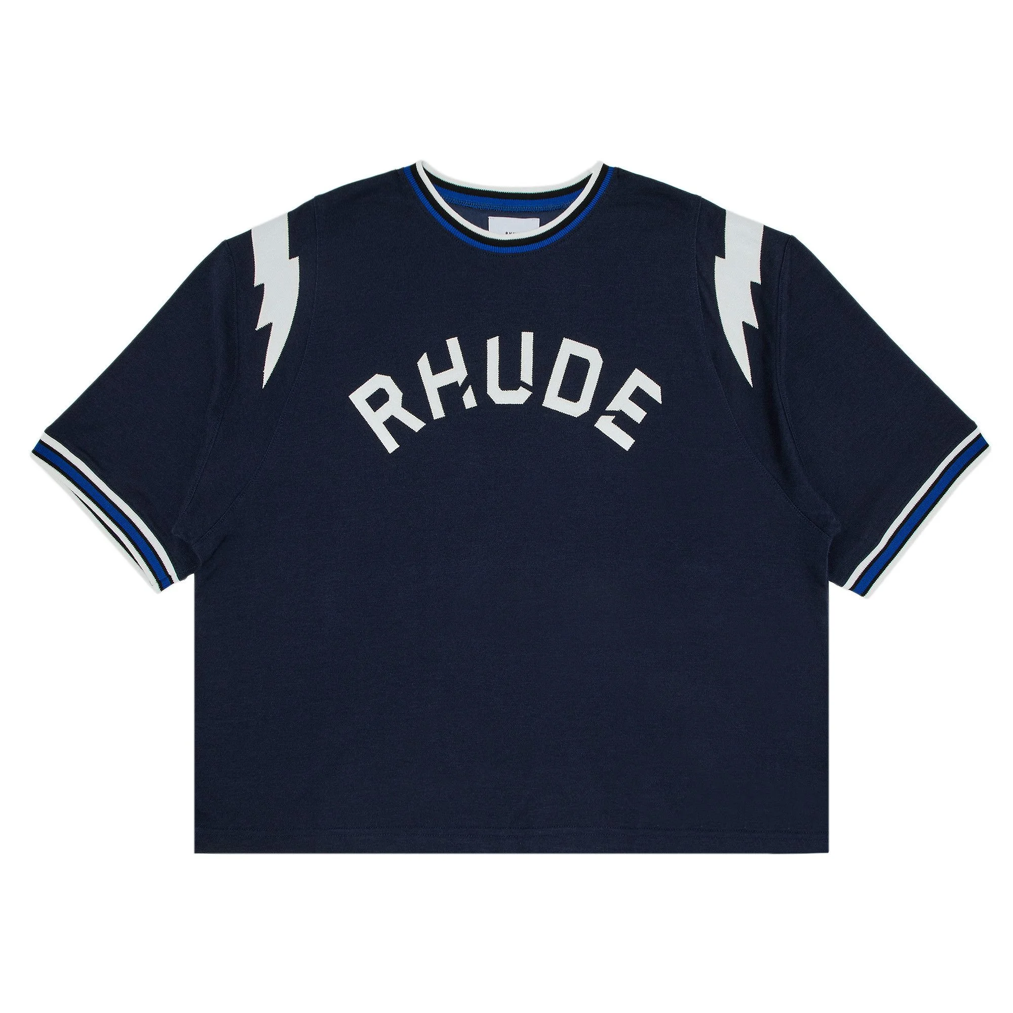 Rhude Logo Lightning Ringer Tee 'Navy/White'