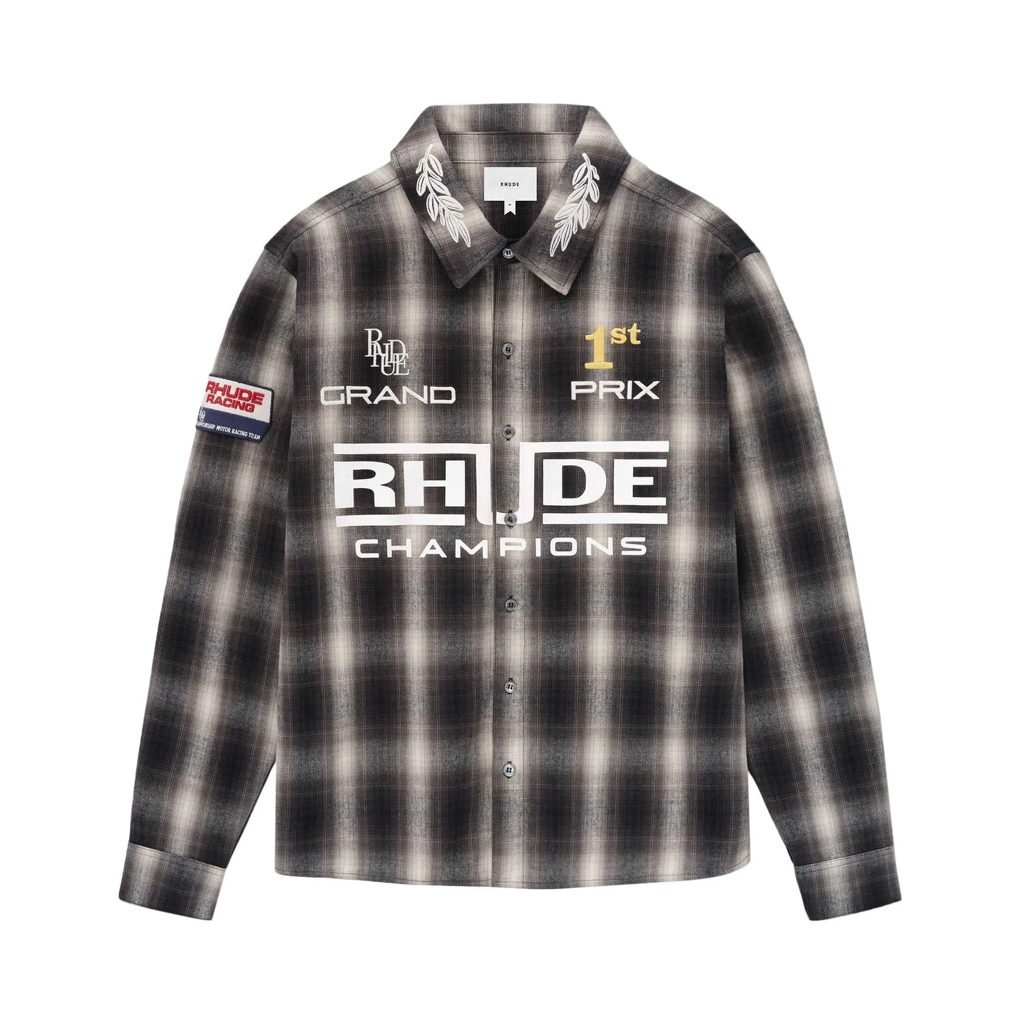 Rhude Racing Logo Printed Checked Shirt 'Black/Grey'