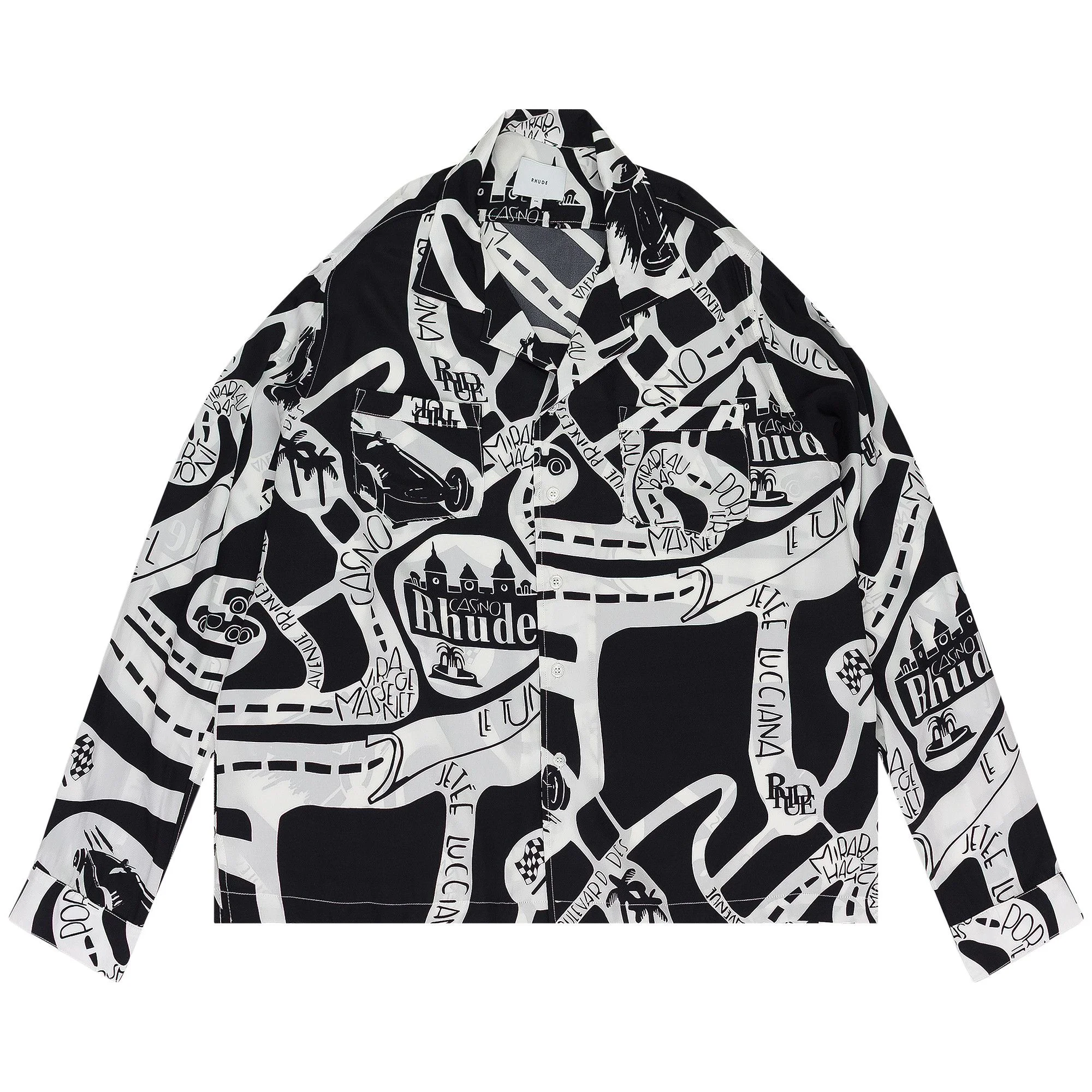 Rhude Strada Silk Long-Sleeve Button Down Shirt 'Black/White'