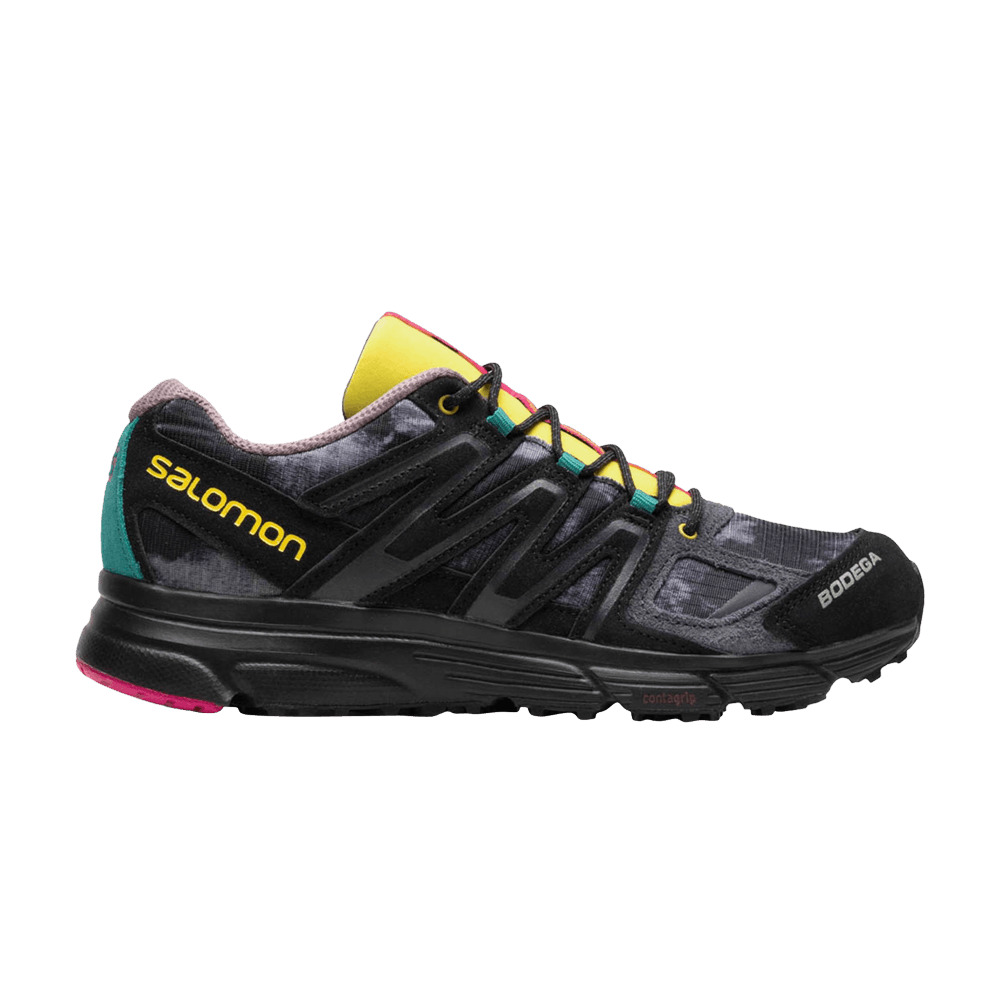 The Bodega x Salomon X-Mission 4 Suede ‘Full Bleed’ showcases a unique 1/1 ‘Stormy Sky’ tie-dye pattern on the nylon ripstop upper, fortified with suede overlays in black and grey. In addition to reflective accents, the shoe’s murky palette is enlivened with a teal-colored heel overlay and contrasting pops of yellow and fuchsia on the tongue. Salomon branding is stamped on the lateral heel, while a Bodega wordmark graces the forefoot. Lightweight cushioning arrives via a solid black EVA midsole, supported underfoot by a lugged rubber outsole. UPPER MATERIAL Nylon