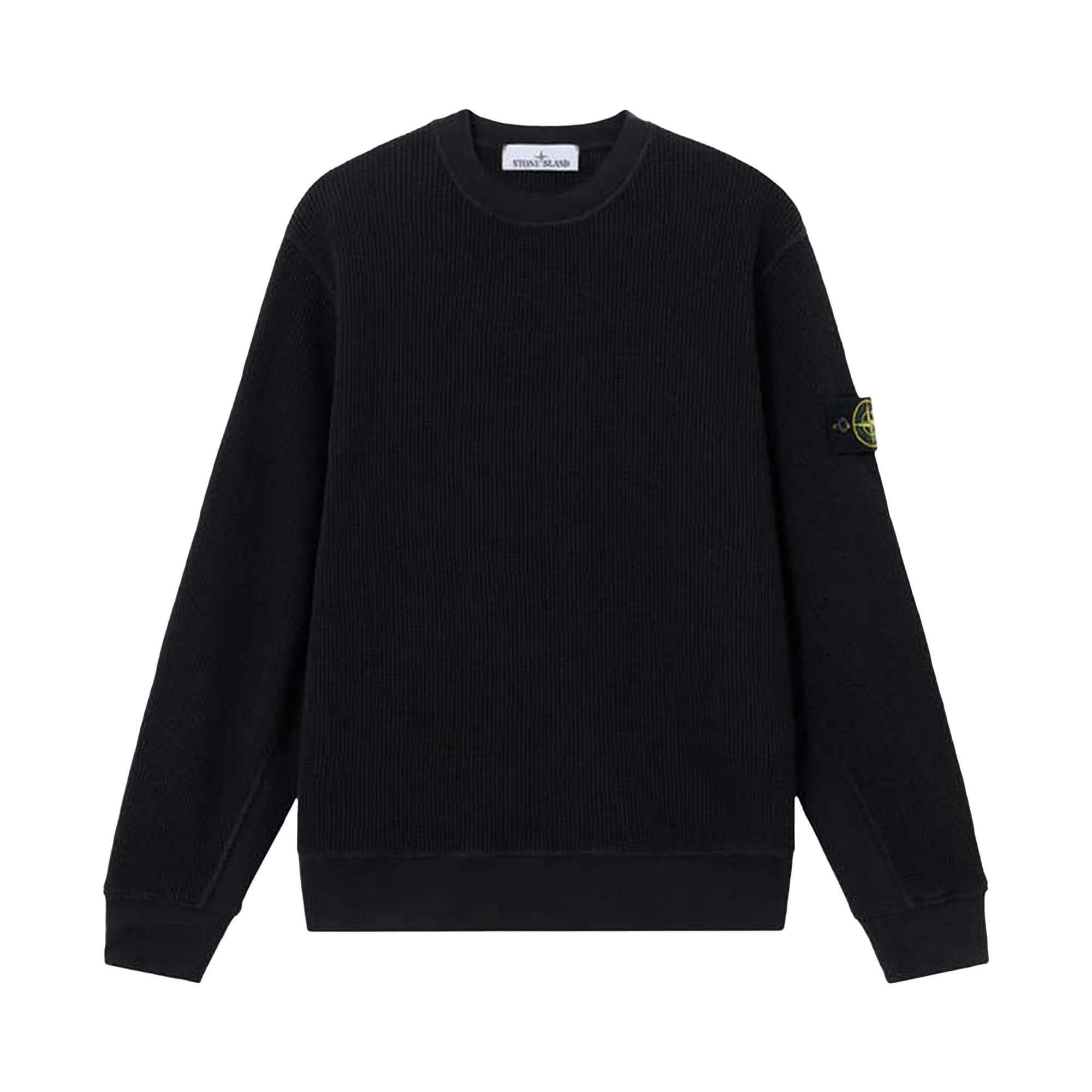 Stone Island Organic Cotton Waffle Fleece Crewneck Sweatshirt 'Black'