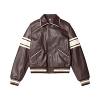 Stussy x Wales Bonner Leather Varsity Jacket Brown