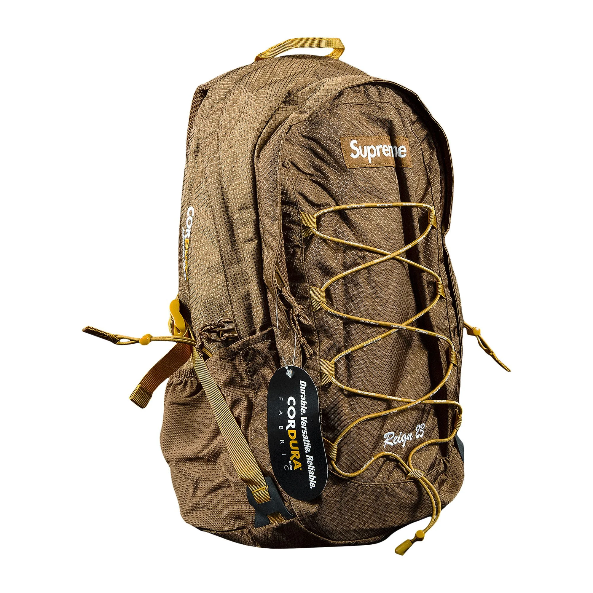 This Supreme backpack is sized to hold essentials for a day out or hiking trip. From the SS22 collection, the accessory is made from brown Cordura fabric that is durable and water resistant. The brand's signature logo is embroidered on the front.