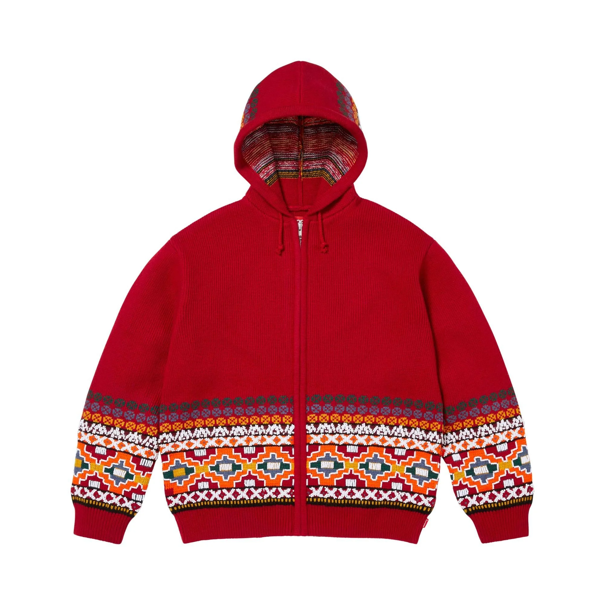 Supreme Beaded Zip Up Hooded Sweater 'Red'