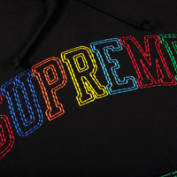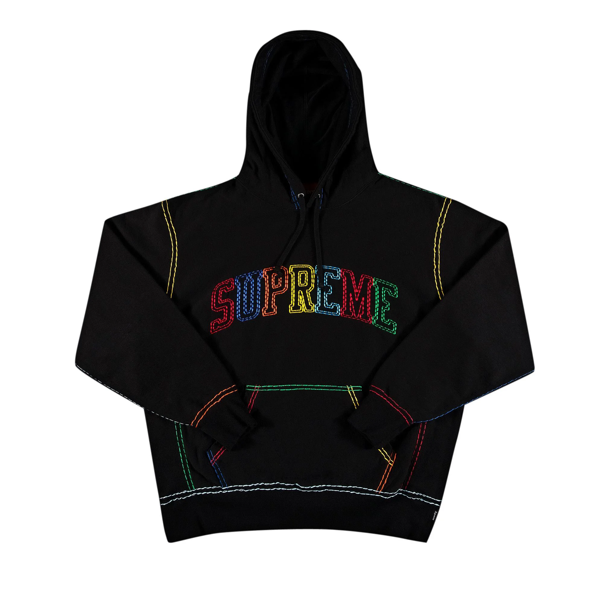 This Supreme Big Stitch sweatshirt is detailed with multicolored contrast stitching on the seams. The brand's logo is spelled out across the front. Made for the FW20 season, the pullover is rendered in black and topped with a hood.