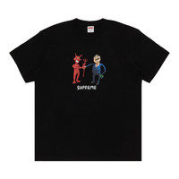 Supreme's Business Tee features graphics depicting a cartoon devil making a deal with a man in a business suit. Made for SS23, the crewneck top is designed in black and has a printed logo on the front.