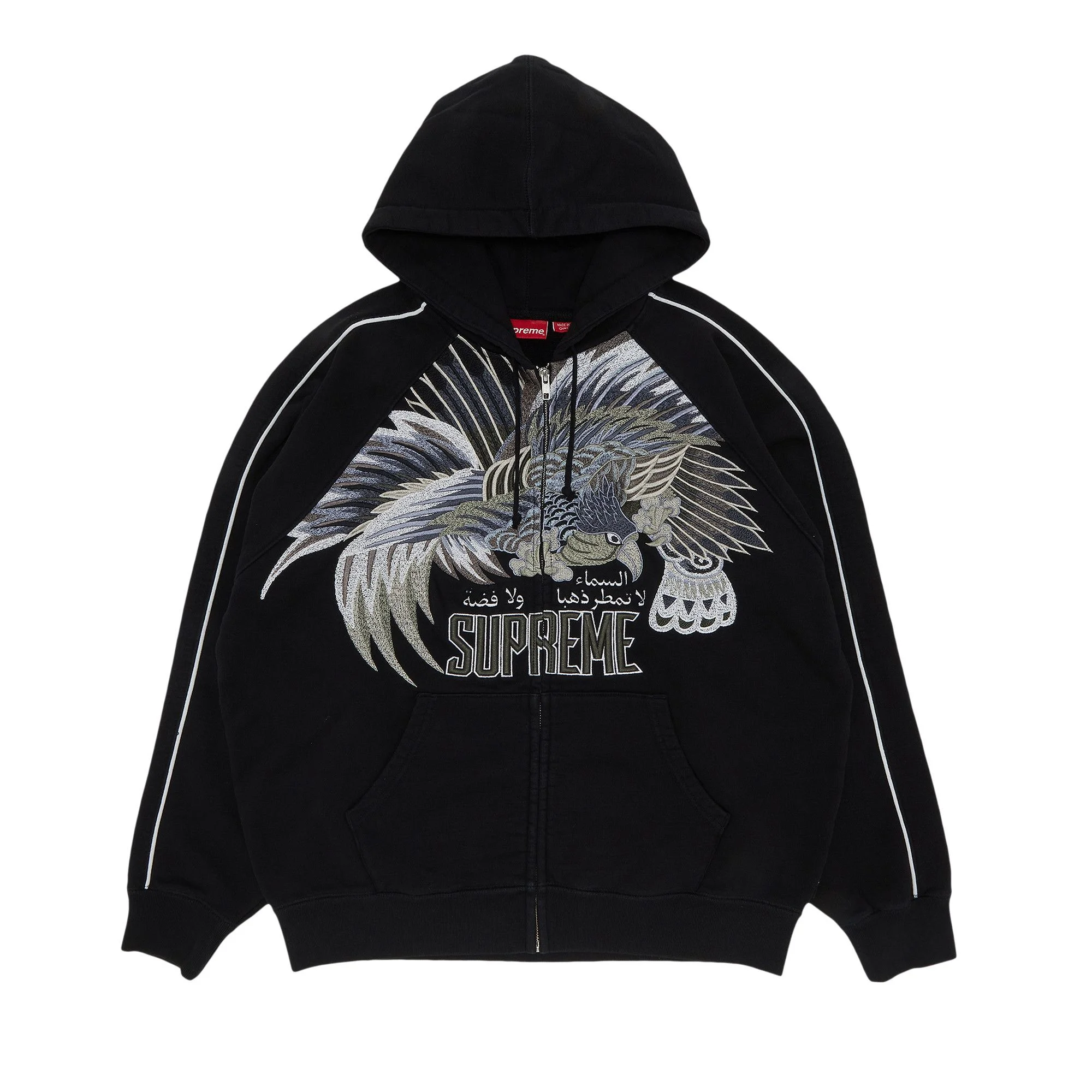 Supreme Falcon Raglan Zip Up Hooded Sweatshirt 'Black'