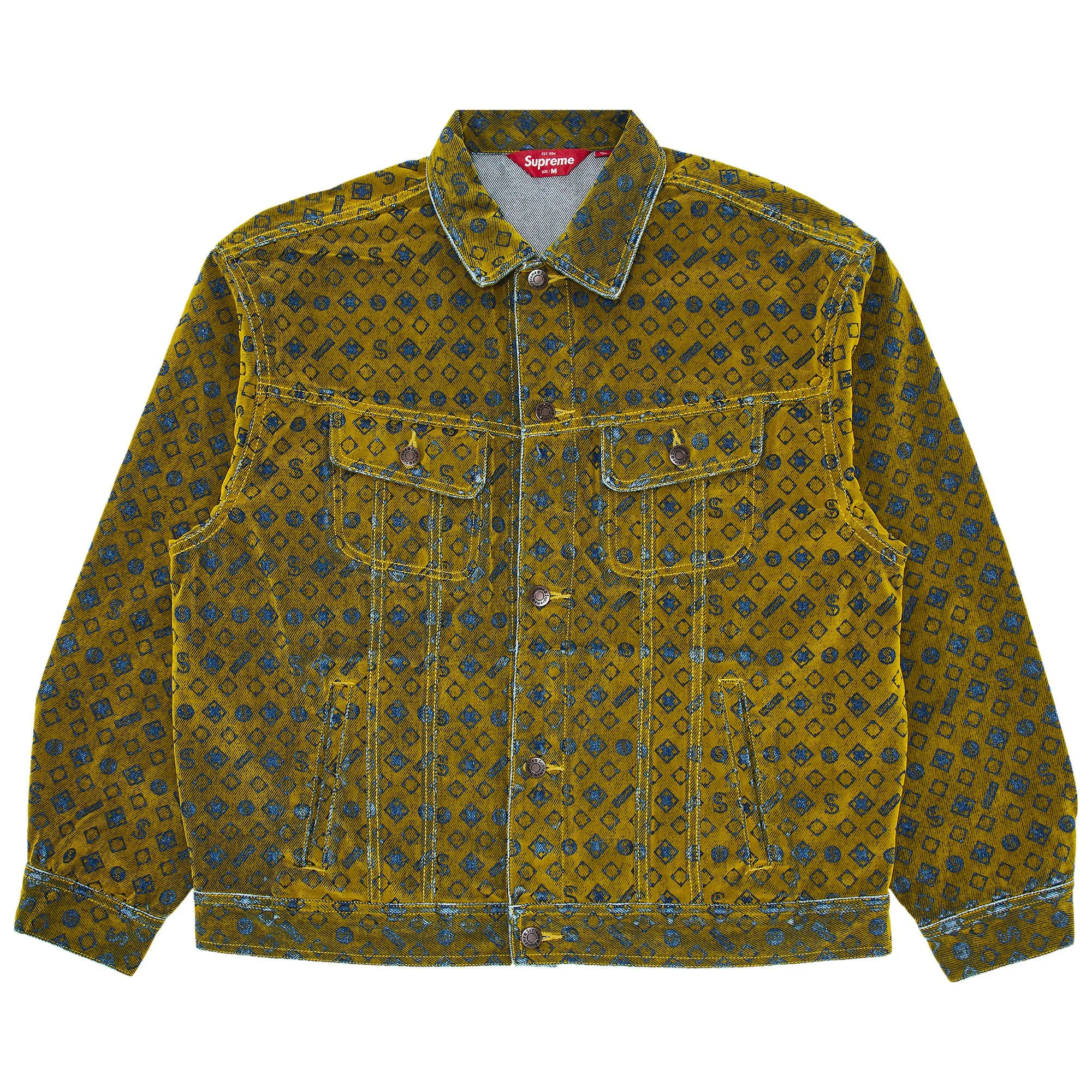 Supreme Flocked Denim Trucker Jacket Mustard
