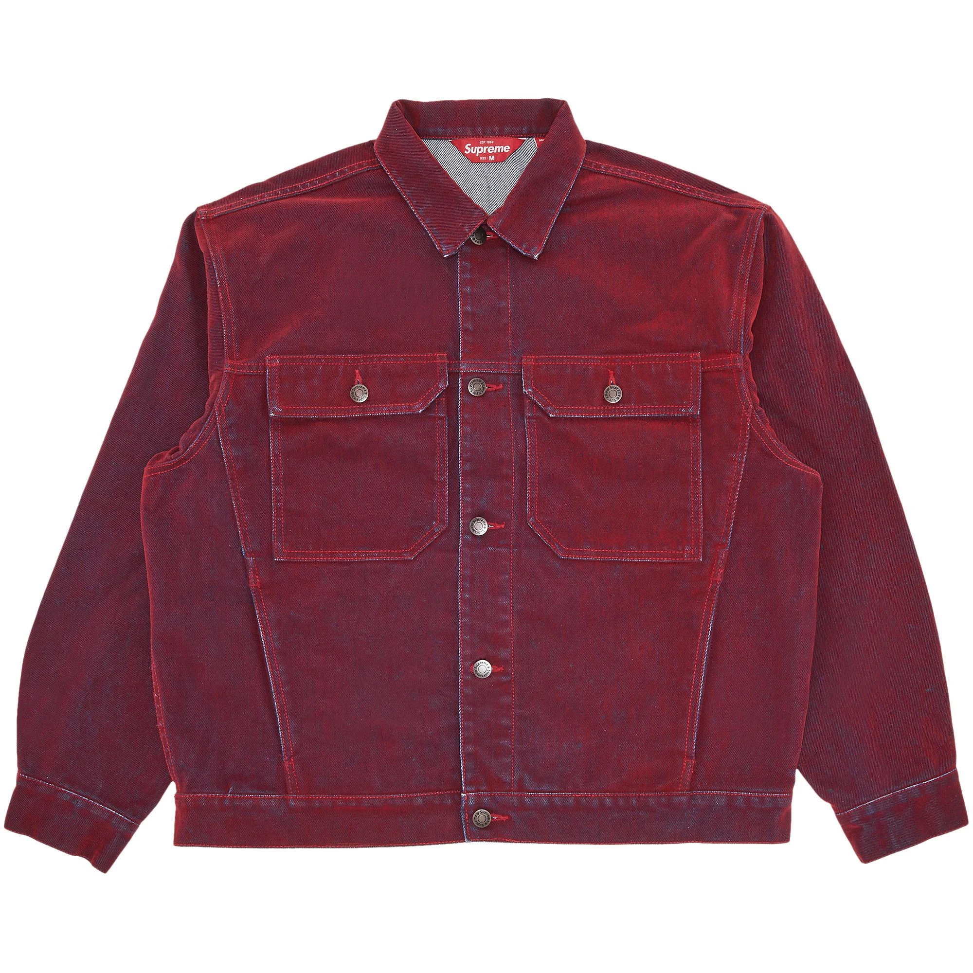 Supreme Flocked Denim Trucker Jacket Red