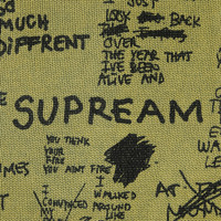 Supreme's Gonz Poems Sweater is knitted with original text by skate icon and artist Mark Gonzales. Made for the SS23 season, the olive green pullover is crafted from cotton and features ribbed trimming at the neck, cuffs and hem.