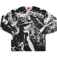 This Supreme sweater is knitted from cotton with printed graphics all over. Made for the FW19 season, the pullover is topped with a crewneck and features ribbed trimming.