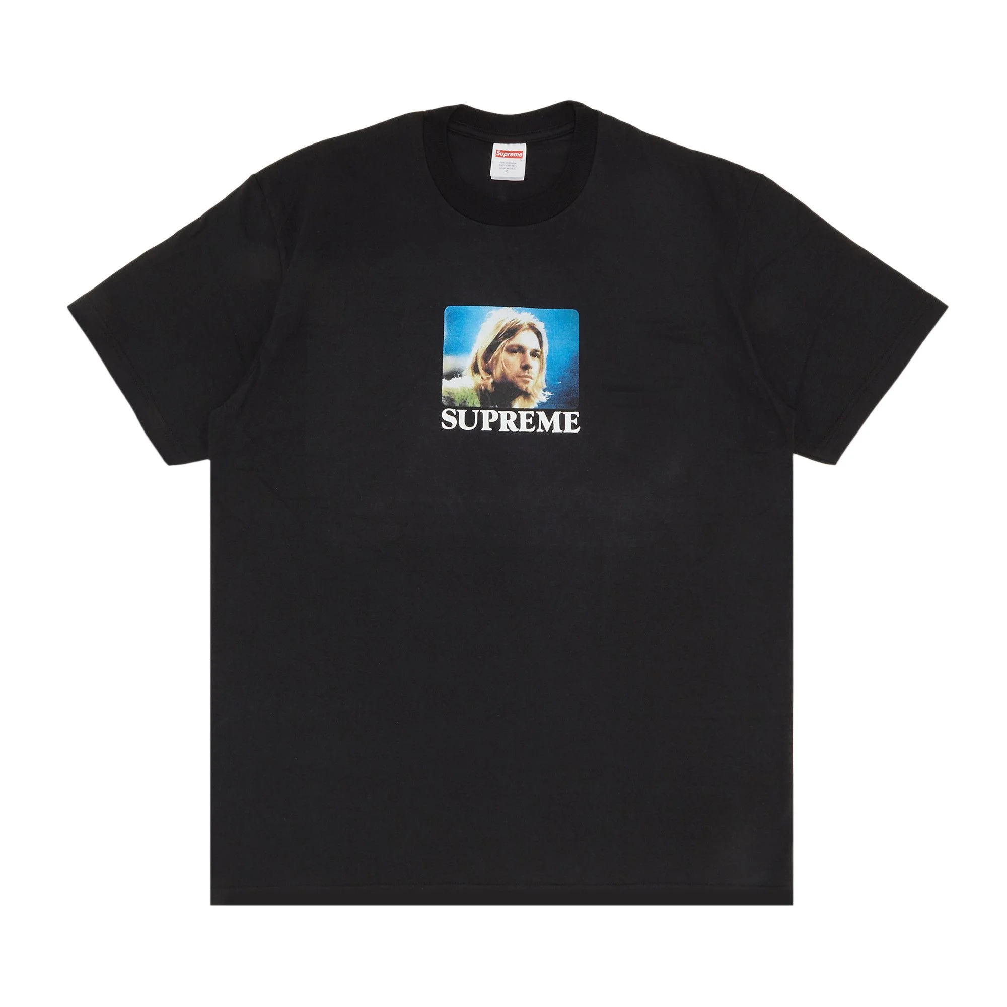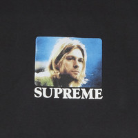 Supreme's Kurt Cobain Tee from SS23 is printed with graphics of the famed Nirvana frontman above the brand's moniker. It's designed in a sleek black colorway and finished with a classic crewneck.