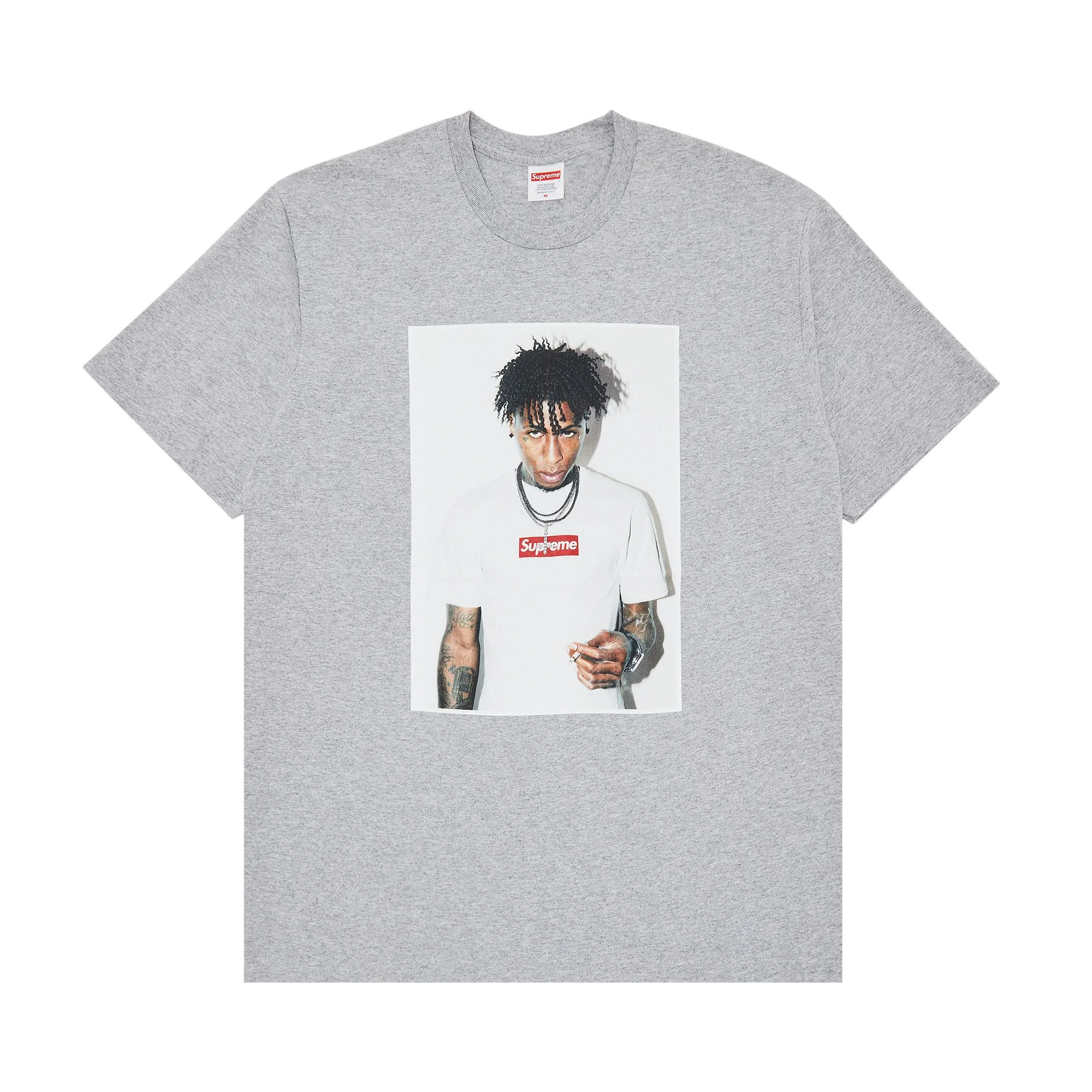 This Supreme NBA Youngboy Tee is rendered in heather grey and printed with an image of the rapper on the front. From the FW23 collection, it features an iconic box logo T-shirt within the artwork.