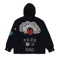 Supreme Patches Hooded Zip Up Shirt 'Black'