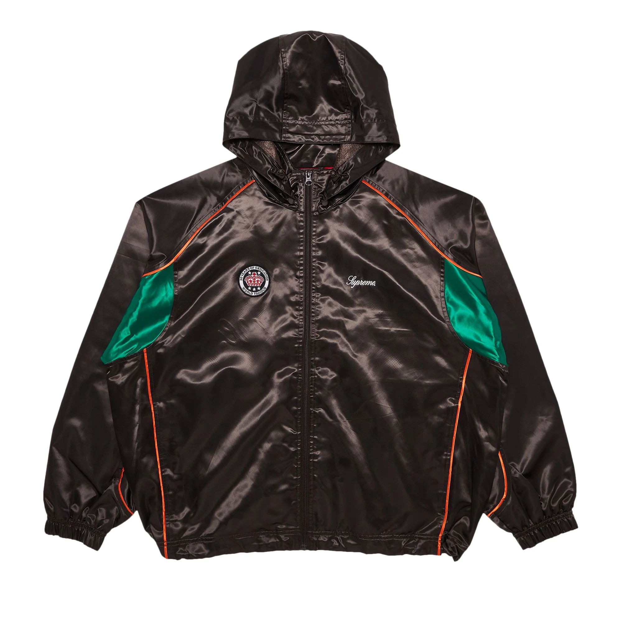 Supreme Satin Hooded Track Jacket Brown