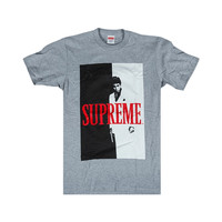 This Supreme Scarface tee honors Brian De Palma's iconic 1983 crime drama. Made for the NYC brand's FW17 collection, the crewneck T-shirt is crafted from cotton and rendered in grey.