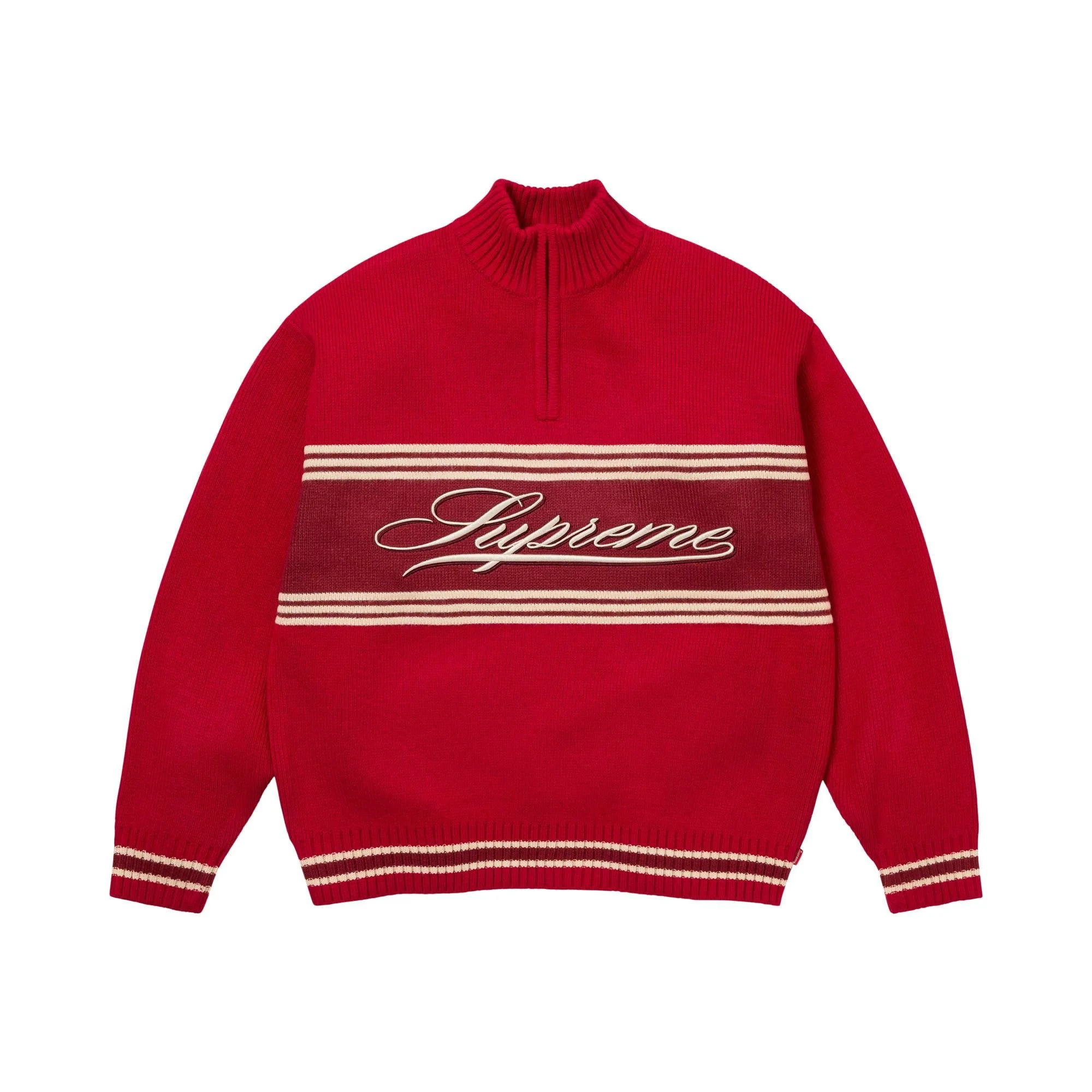 Supreme Script Stripe Half Zip Sweater Red