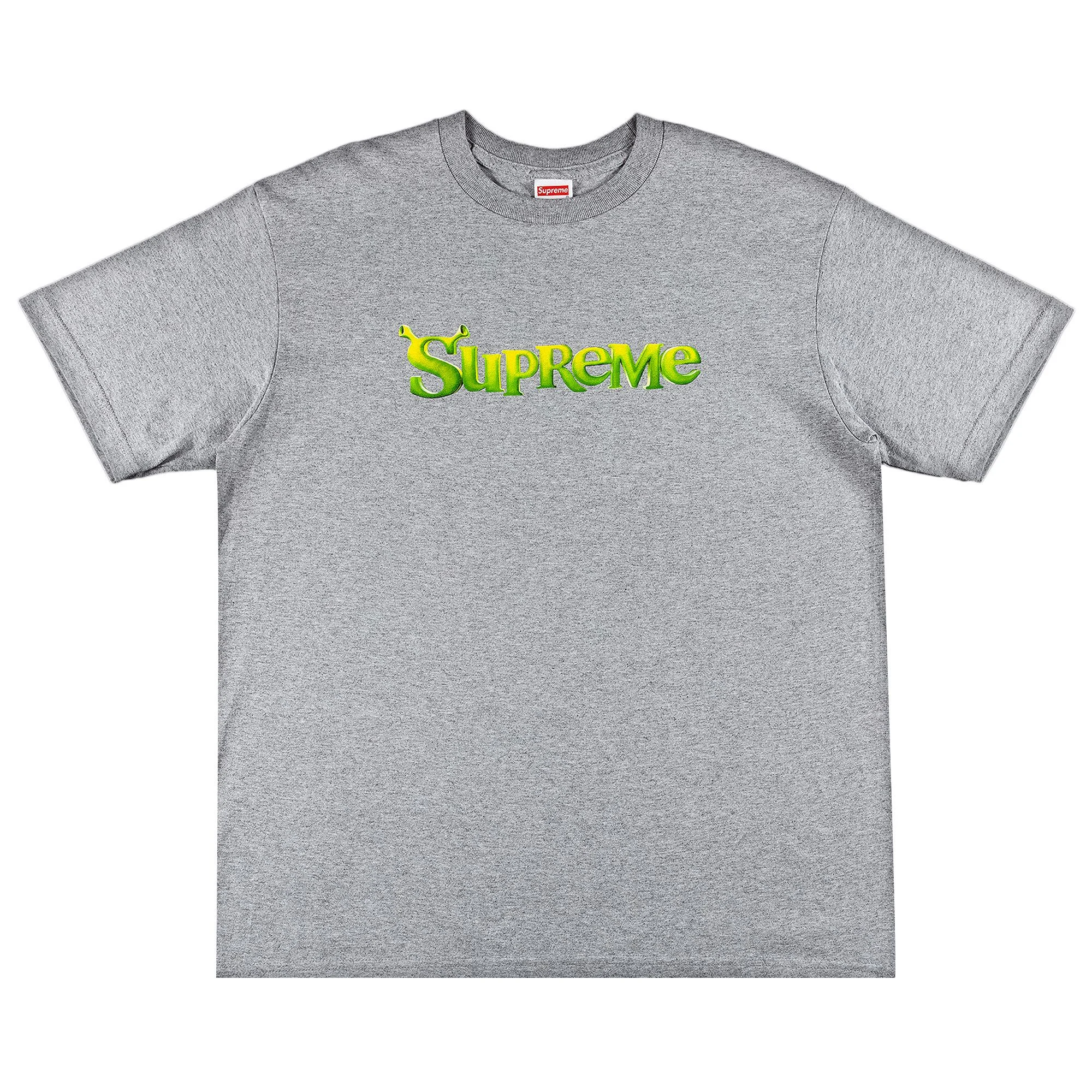 Supreme's logo is flipped with that of the 2001 Dreamworks film 'Shrek' on this T-shirt from FW21. Realized in heather grey, the short-sleeve tee is topped with a classic crewneck.