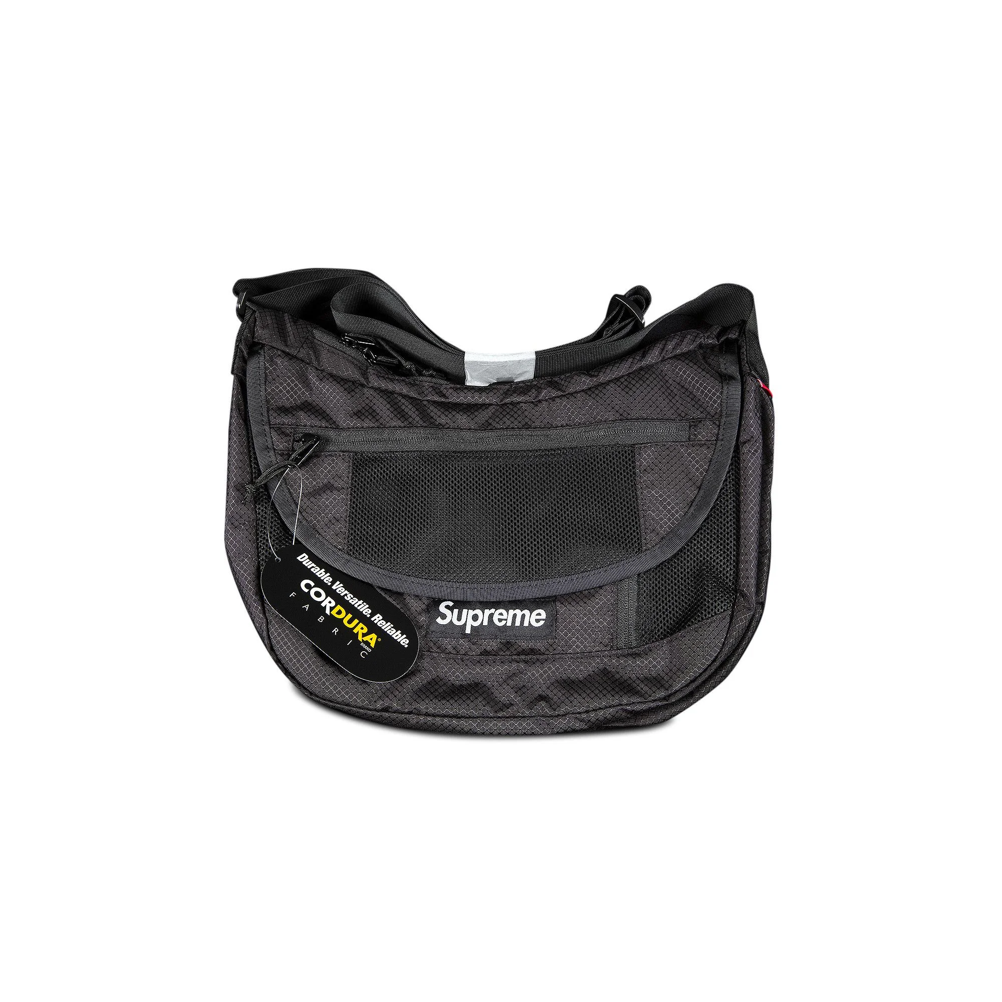 Supreme's Small Messenger Bag from SS22 is sized to carry everyday essentials. Made from durable water-resistant Cordura fabric, the accessory is rendered in black and detailed with a logo embroidery on the front.