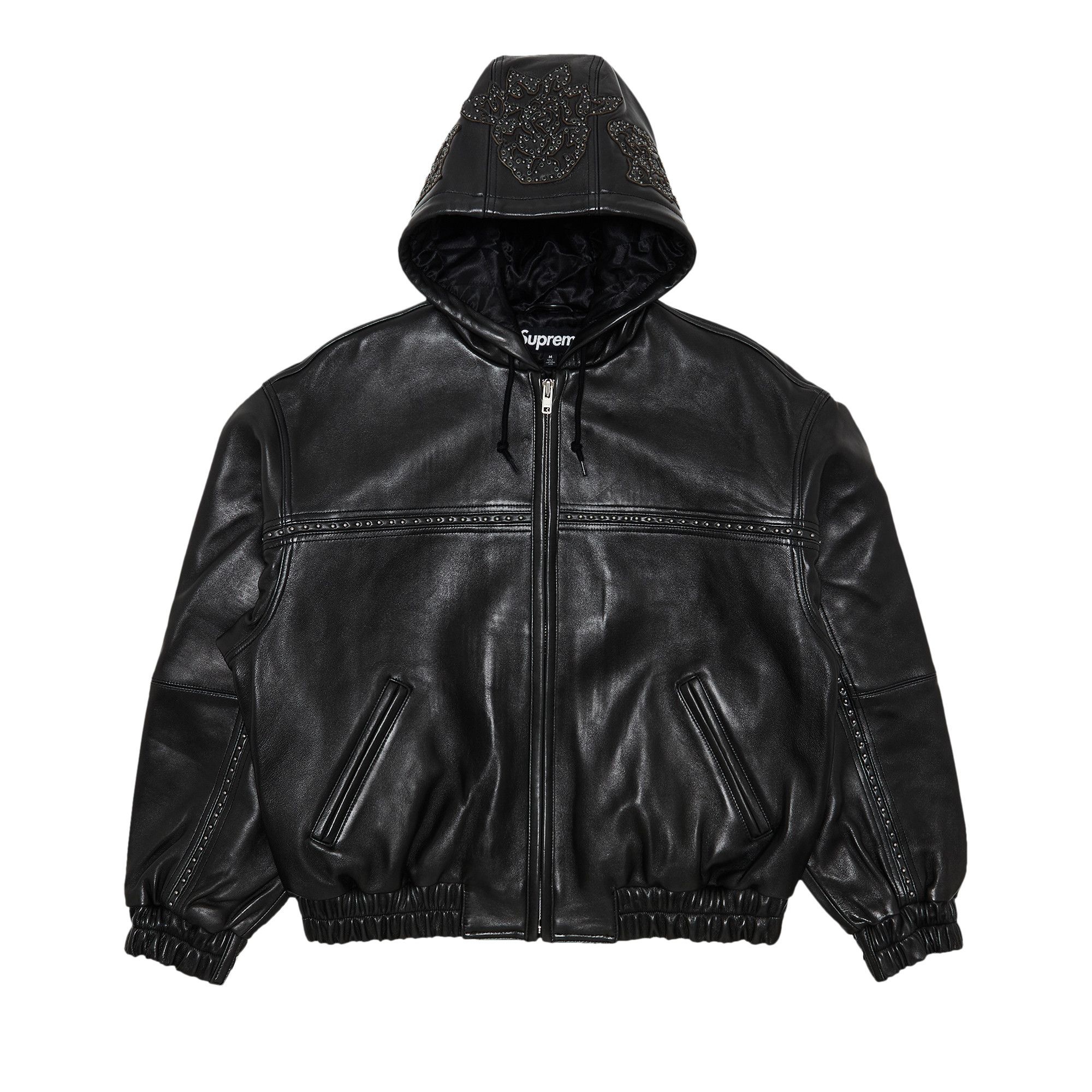 Supreme Studded Hooded Leather Jacket Black