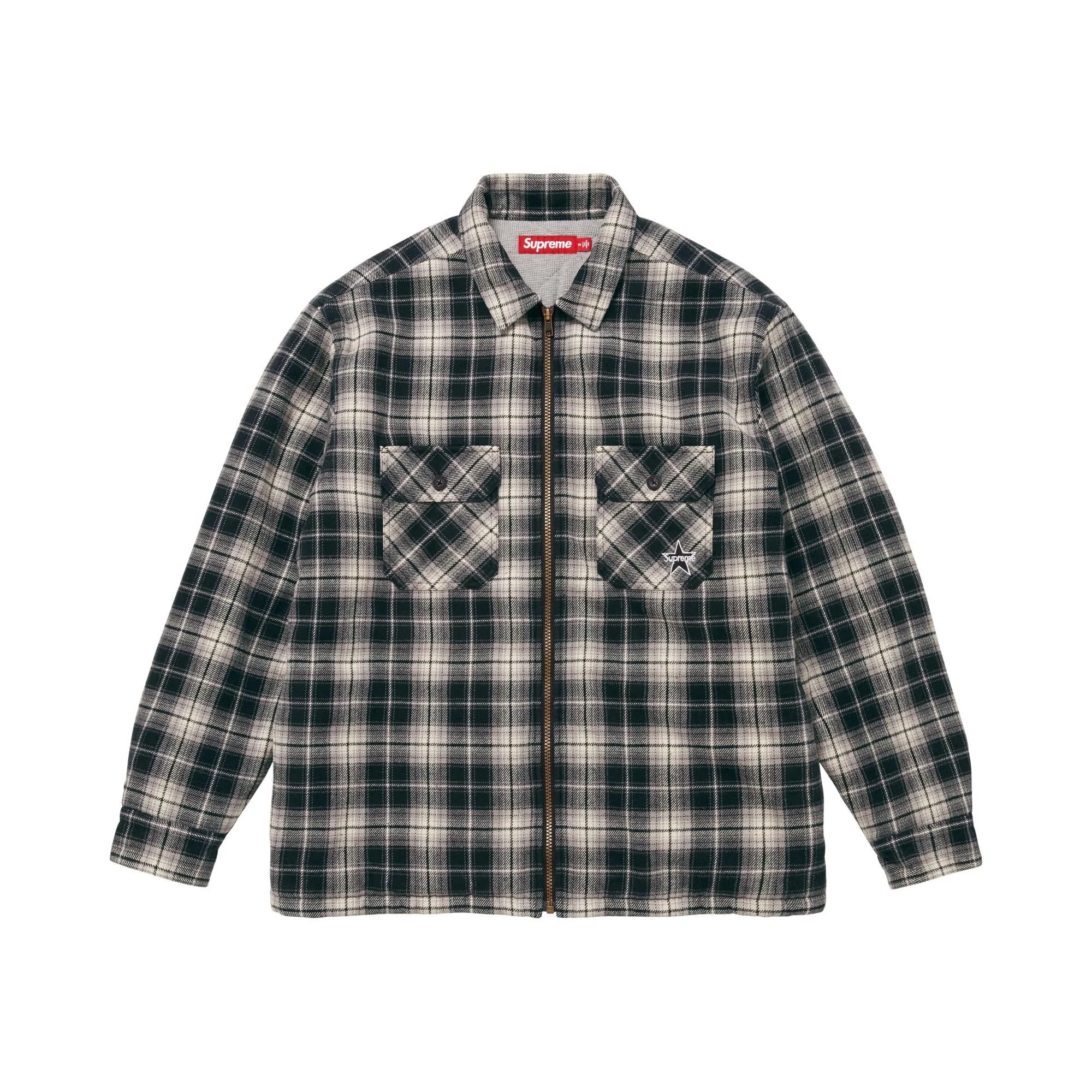 Supreme Thermal Lined Zip Up Flannel Shirt Black