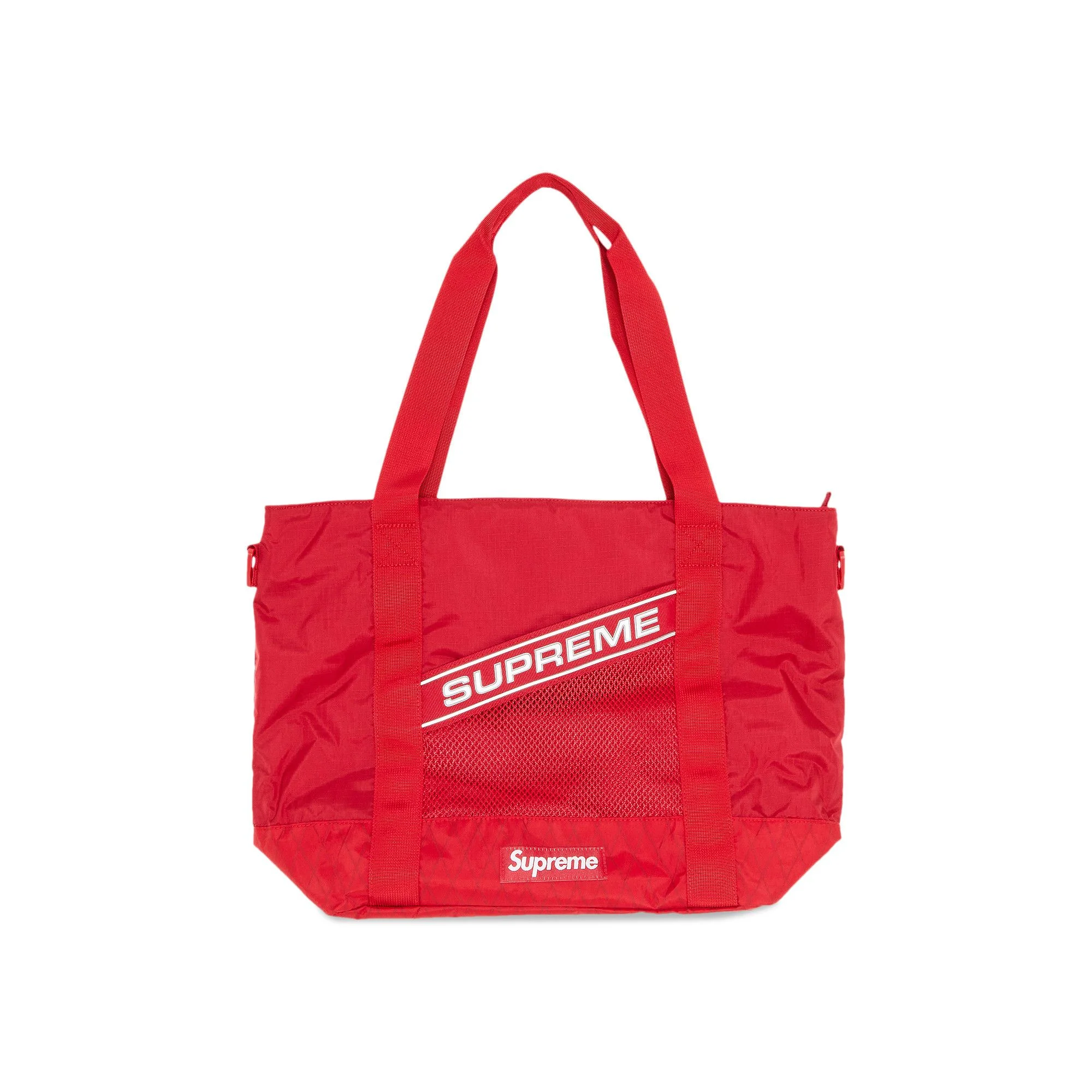 This Supreme Tote Bag is executed in red and detailed with two logo embroideries. Spacious enough to fit essentials for a day out or overnight trip, the accessory is finished with a double shoulder strap.