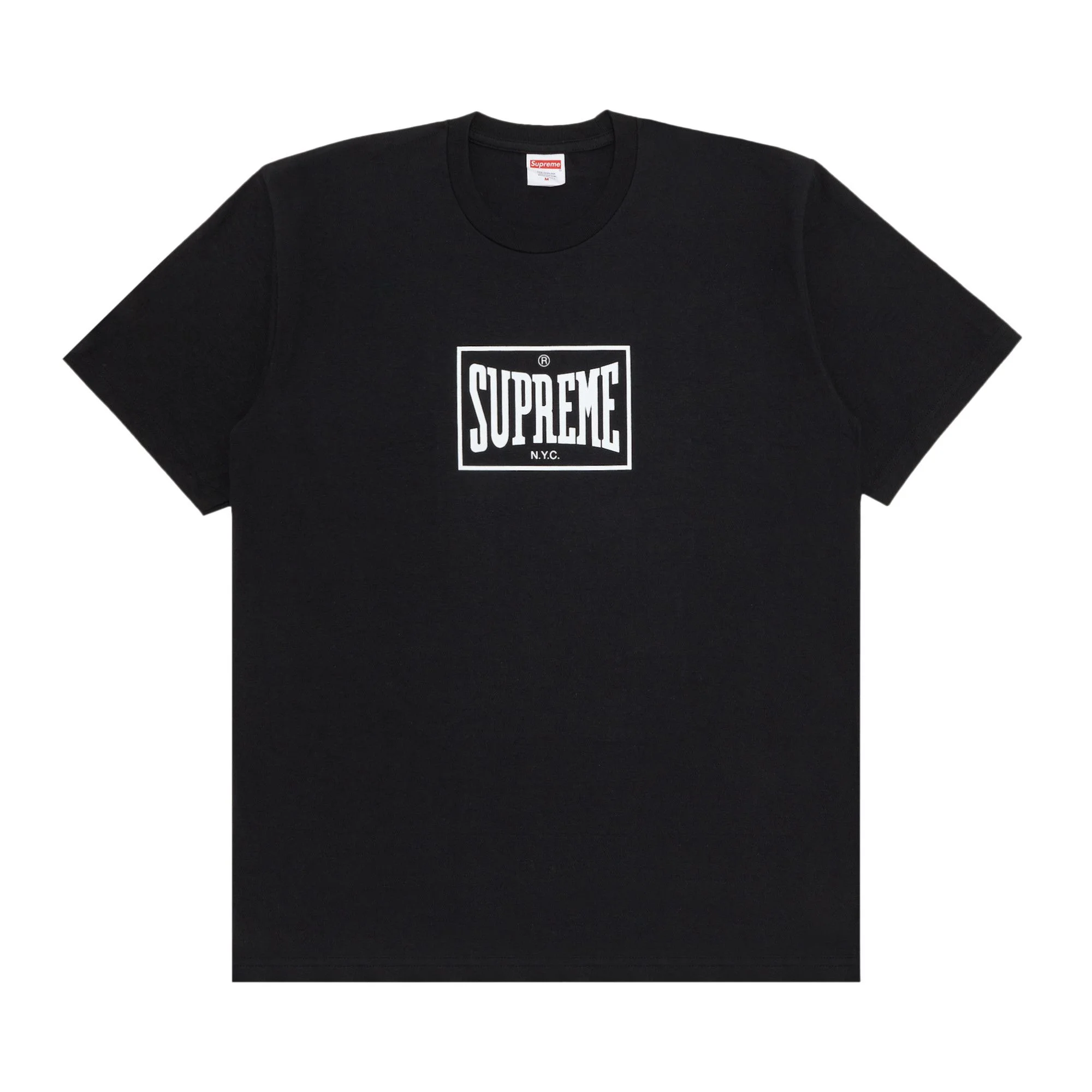 Supreme's Warm Up Tee is crafted from cotton and features a white logo print on the front. Made for FW23, the short-sleeve shirt is designed in black and topped with a crewneck.