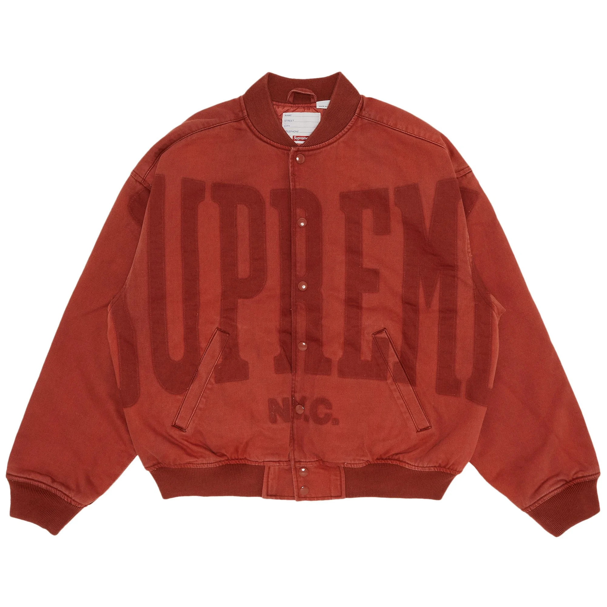 Supreme Washed Knockout Denim Varsity Jacket Rust