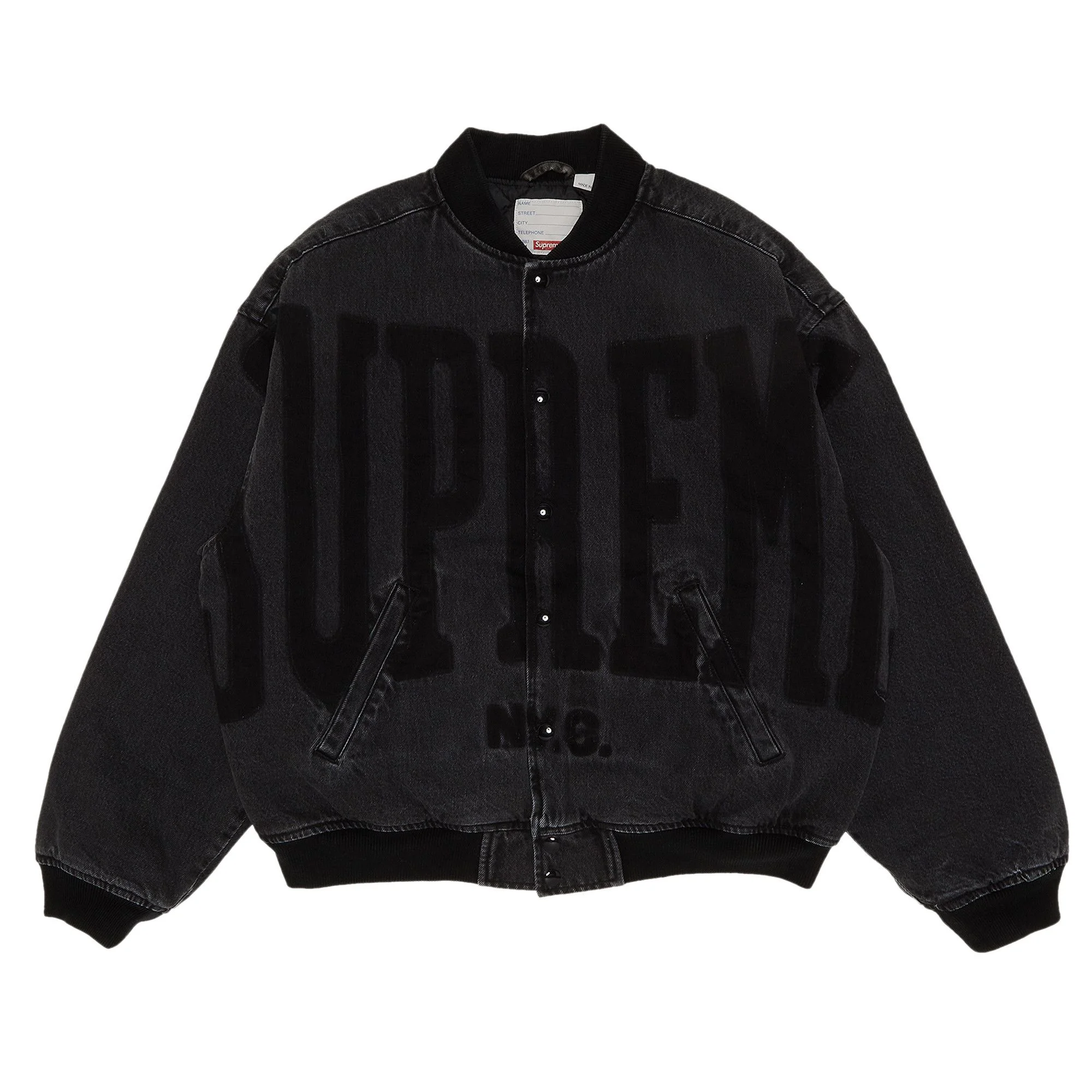 Supreme Washed Knockout Denim Varsity Jacket Washed Black