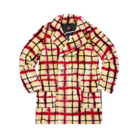 Supreme Jean Paul Gaultier Double Breasted Plaid Faux Fur Coat OffWhite