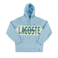 Supreme LACOSTE Logo Panel Hooded Sweatshirt Light Blue