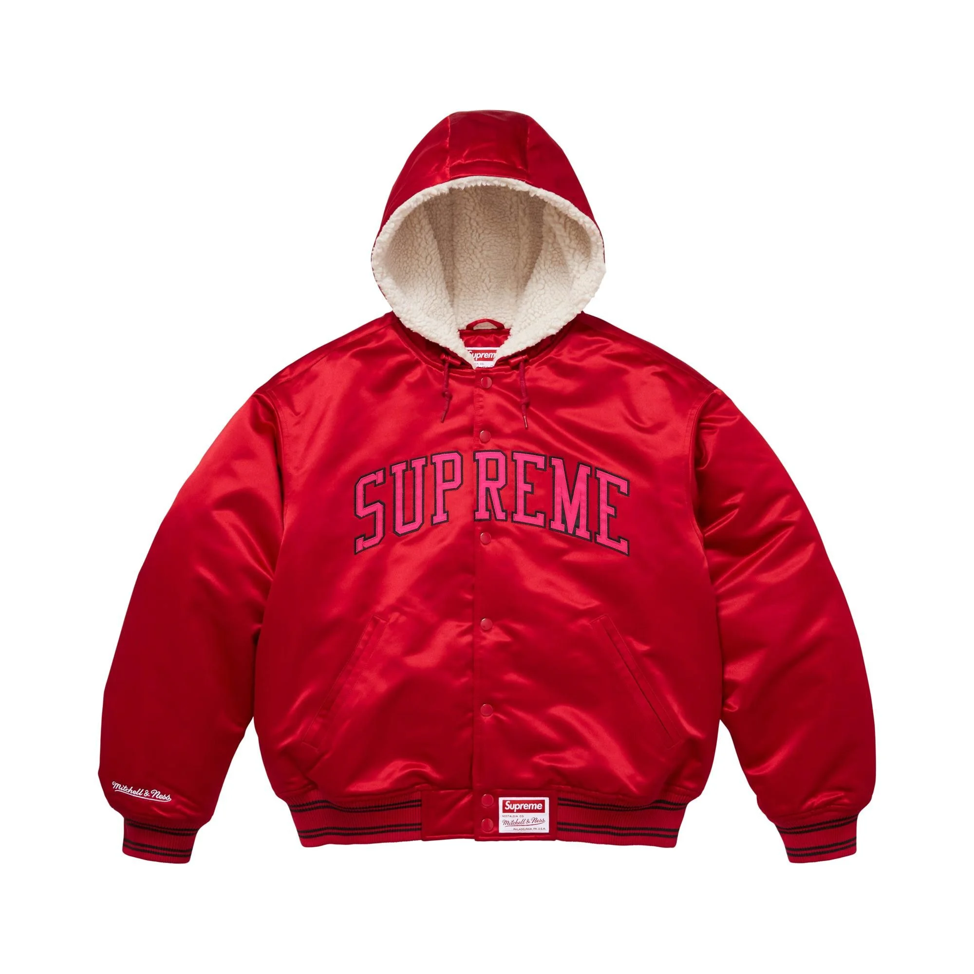 Supreme Mitchell & Ness Lined Hooded Satin Varsity Jacket Red