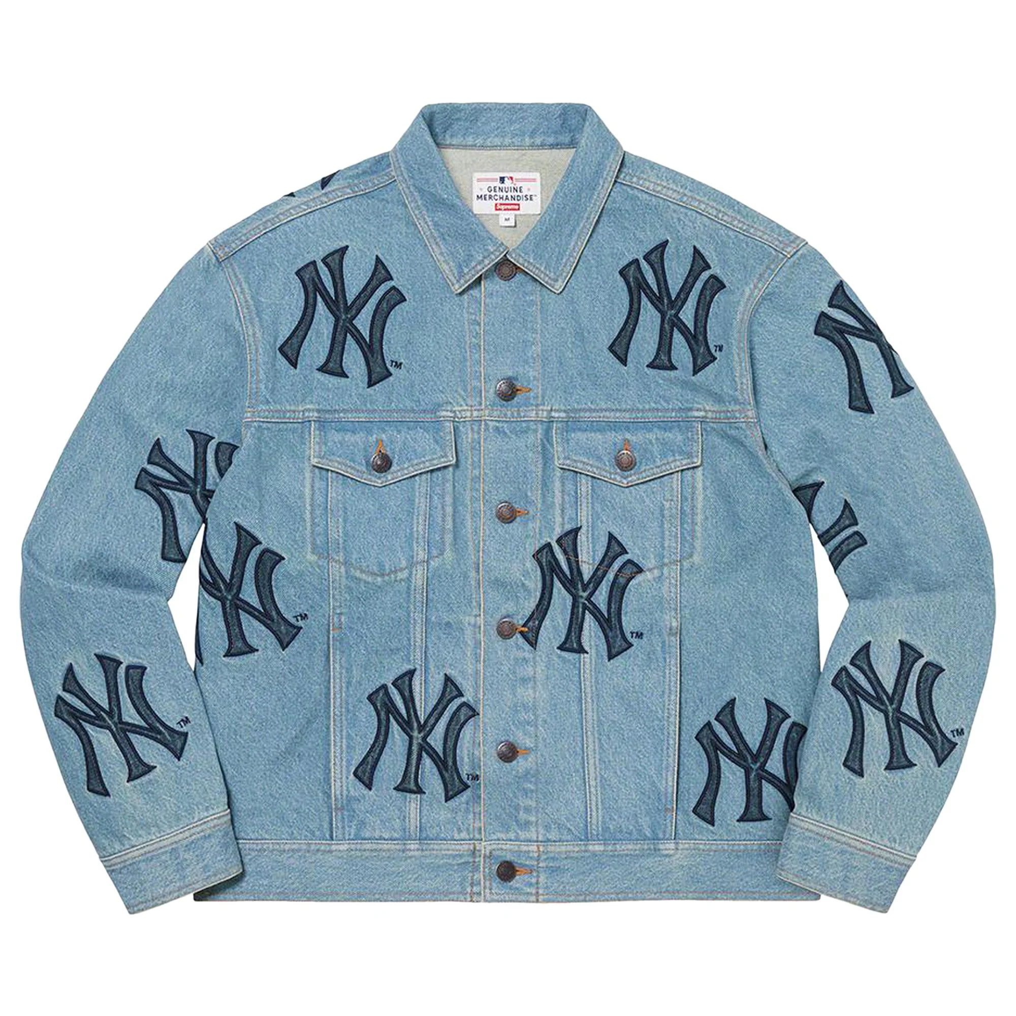 Supreme x New York Yankees Denim Trucker Jacket Washed Blue