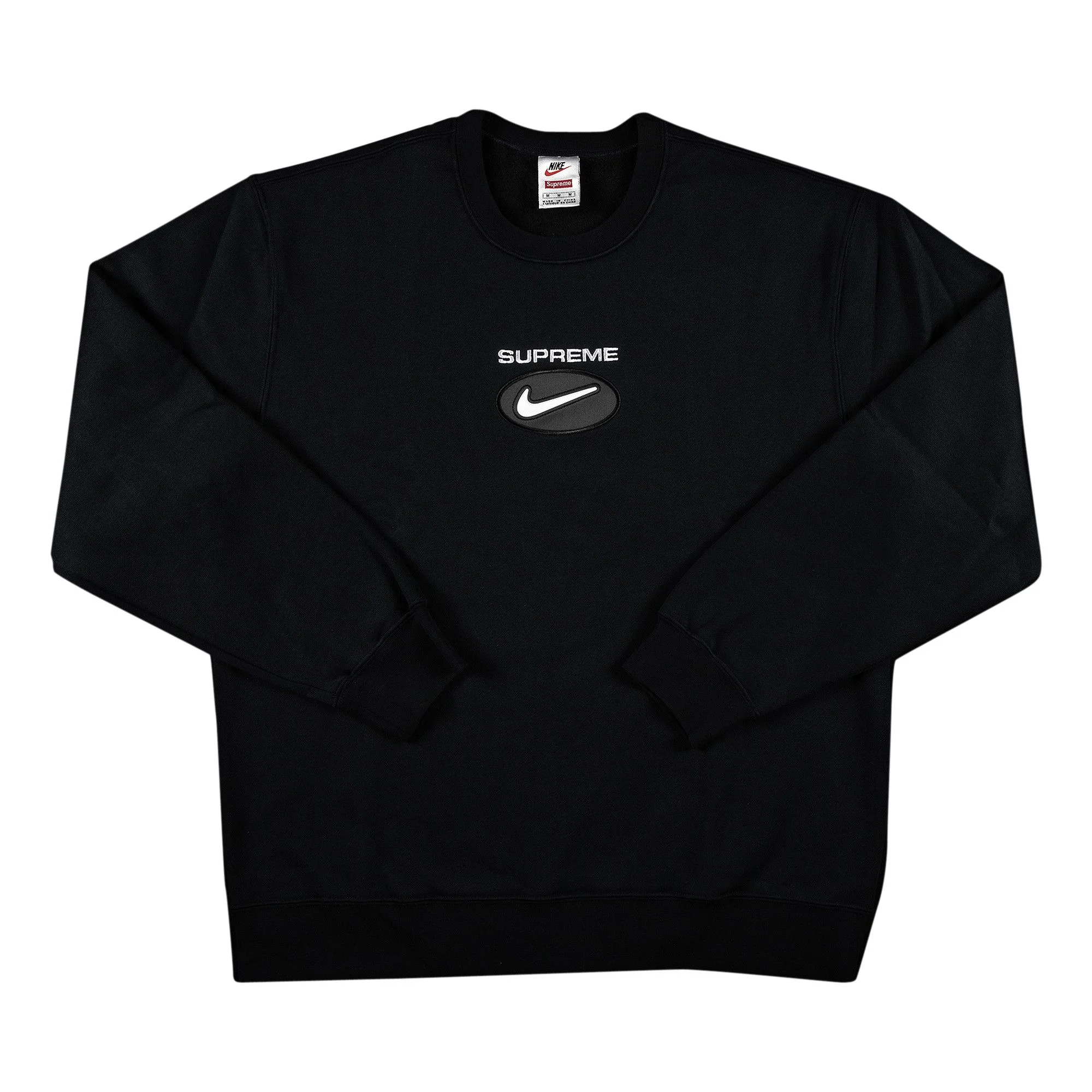 This Supreme x Nike Jewel Sweatshirt in 'Black' is embroidered with each creative partner's signature branding in small white text on the front. From FW20, it's topped with a classic crewneck.